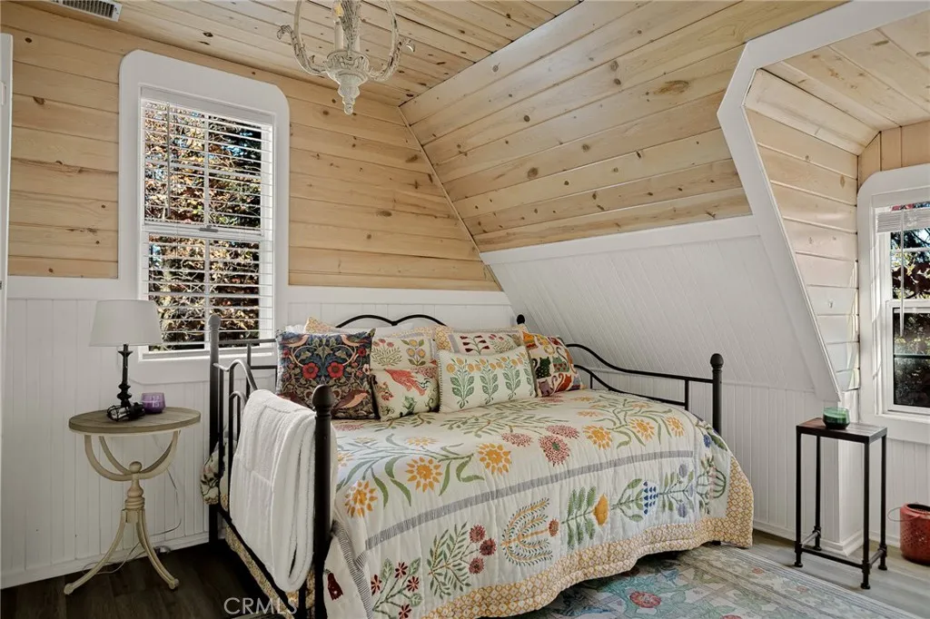 It had me from “hello.” A charming vintage cabin nestled among mountain foliage, adorned with breathtaking stonework and offered with full lake rights and optional turnkey appointments. The shingled façade immediately catches the eye, and within, a gorgeous fireplace takes center stage—no disappointment there. Beamed ceilings, wood-paneled walls, and tiled kitchen and baths create a warm, nostalgic ambiance throughout. Upstairs, you’ll find elevated ceilings and quaint dormers that frame the paned windows, flooding this storybook cottage with natural light. Don’t worry if this home steals your whole heart, becuase it has a generac to keep it charged… ALL NIGHT LONG! Just a stone’s throw (when’s the last time you heard that?) from Lake Arrowhead Village—the mountain’s lakefront hub for shopping, dining, and entertainment—this cabin offers the best of both charm and convenience with its lake oriented location. A true four-season getaway, embraced by a picket-style fence and inviting patio approach, it will have you at “hello”… and reluctant to ever say “goodbye.” Low in inventory but rich in romance and nostalgia—this one is for the dreamers.