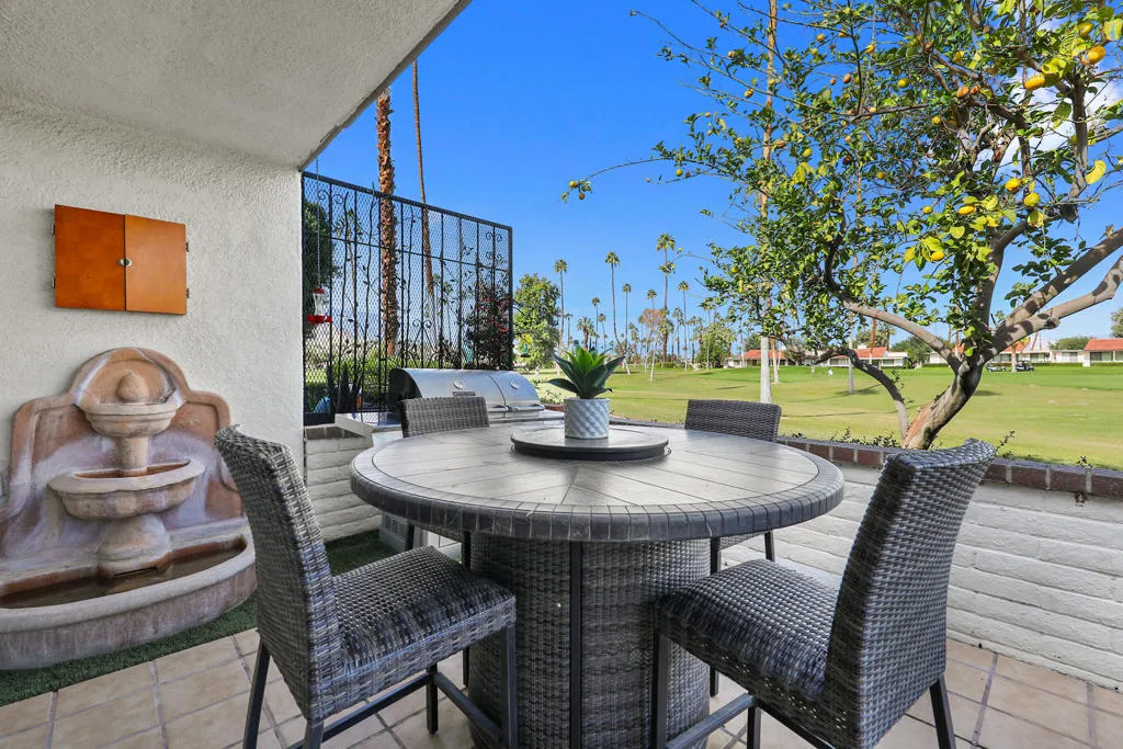 **PRICE IMPROVEMENT** Sought-after stunning Double – Fairway Mountain View condo located behind the gates of Rancho Las Palmas Country Club! This highly upgraded contemporary 2-bedroom, 2-bath home features excellent bedroom separation, high vaulted ceilings, designer chef’s kitchen, rare fireplace complemented with glass rock all within an open luxurious floorpan. The master design front courtyard with mountain and fairway views is complemented with your own high end Jacuzzi with privacy, professional designed landscape with pavers and serene lighting. You’ll find pickle ball, tennis and 3 golf courses right at your finger tips. Great social membership too! The OMNI resort and SPA is just a short walk away as well as the RIVER with shopping, dining and more! Look no further as you have just found your NEW desert home in the heart of Rancho Mirage! .