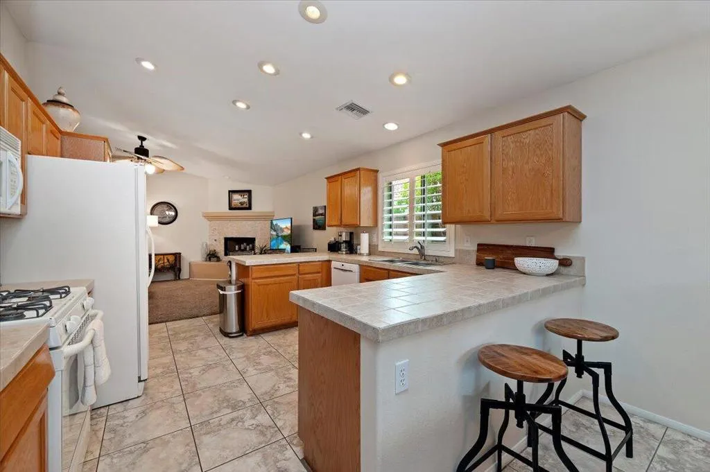 Beautiful 3-bedroom, 2-bath home featuring an inviting open floor plan with a blend of tile and carpet throughout. Enjoy cozy evenings by the fireplace, enhanced comfort with ceiling fans, and seamless indoor-outdoor living. Step outside to your private backyard oasis complete with a sparkling pool, relaxing spa, and a spacious covered patio–perfect for entertaining or unwinding.Ideally located near the world-renowned Santa Carmelita Mountains, this home offers quick access to scenic hiking and biking trails. Just minutes from Old Town La Quinta, you’ll enjoy charming boutiques, fine retail shopping, and an array of delicious dining options. A wonderful blend of comfort, convenience, and desert lifestyle living!