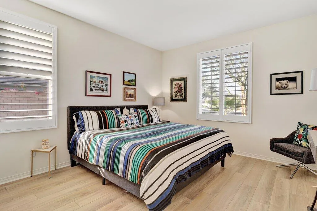 Rare opportunity in Four Seasons at Terra Lago! This Mecca Hills model sits on one of the community’s largest lots with mountain views, no rear neighbor, and exceptional privacy. Nearly new and impeccably maintained, the home features over $80,000 in upgrades, solar with reported monthly credits, and a tankless gas water heater for efficiency. Interior highlights include granite countertops, real wood cabinetry, stainless appliances, walk-in pantry, luxury vinyl plank flooring, plantation shutters, and a split floor plan with office/den. The primary suite offers dual vanities, walk-in shower, and expansive closet. Enjoy outdoor living under an extended Alumawood veranda with in-line gas BBQ and space for a future pool and spa. Resort-style 55+ living with pools, a salon, fitness center, pickleball, tennis, clubs, and two championship golf courses nearby.For golf enthusiasts, Terra Lago boasts two championship 18-hole courses that wind through the communities scenic landscape–long regarded as one of the best values in the Coachella Valley. INDIO is one of the largest and FASTEST GROWING communities of Southern California! One of only six named destinations from FODOR’s Travel 2026 ‘Go List’. PRICED TO SELL- COME LIVE THE BEST OF DESERT LIFE!