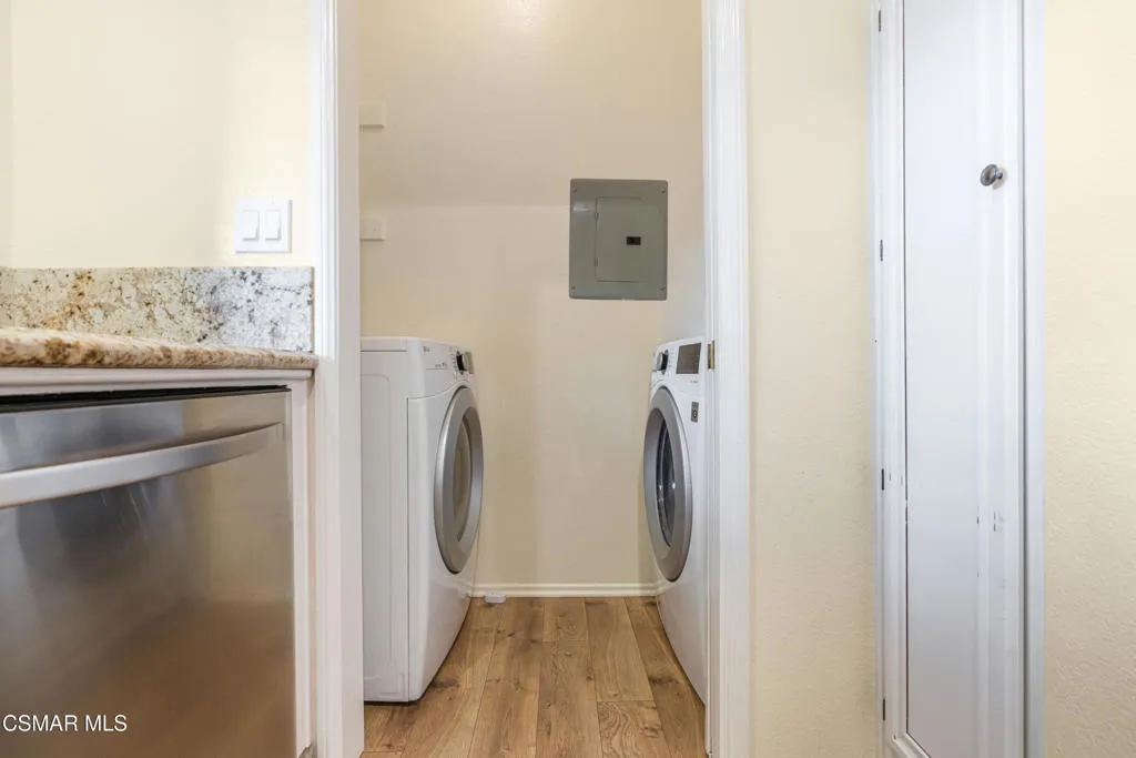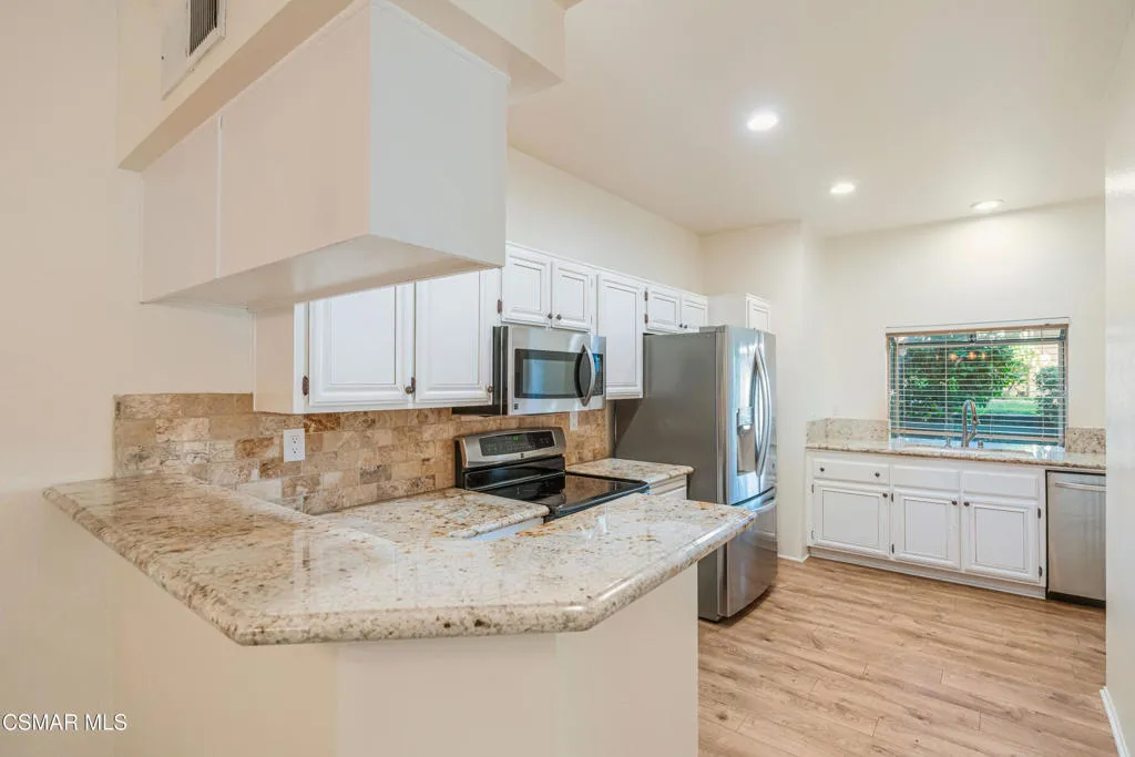 Beautifully updated and highly desirable end unit townhome in sought after Oak Park. This bright and spacious 2 bed 3 bath home offers an open floor plan with high ceilings, a cozy fireplace, light wood like flooring and an outdoor flow to a patio surrounded by lush greenery. The modern kitchen features granite counters, stainless steel appliances, and a breakfast bar. Upstairs are two bedrooms with upgraded ensuite bathrooms, each has a balcony, high ceilings, lots of natural light and a walk in closet. This home also has rare direct access to the garage. An additional assigned covered parking spot is included. Shadow Ridge amenities include 2 pools, 2 spas, 24-hour gym, sauna, racquetball court, tennis courts, sand volleyball, clubhouse, and walking trails.HOA covers trash and basic cable/internet. Close to parks, shopping, hiking, dining, and top rated Oak Park schools.