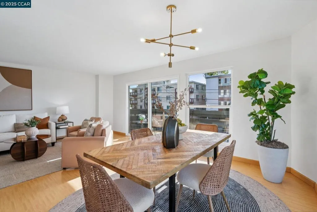 Walk Score 87 – Rare Corner Condo in Coveted Rose Garden Neighborhood This spacious 2-bedroom, 2-bath corner condo in Oakland’s Rose Garden neighborhood is larger than many homes and flooded with natural light, offering a sun-filled retreat without giving up the city vibe and convenience. With bamboo laminate floors, new carpet, fresh paint, and designer lighting, every detail reflects effortless style and modern comfort. The renovated kitchen flows seamlessly into open living and dining areas, anchored by a wood-burning fireplace and a private balcony—perfect for a morning latte, evening glass of wine, or entertaining in style. Both bedrooms are bright and airy with bay windows, offering versatile spaces for work, rest, or retreat. Enjoy deeded garage parking and resort-style amenities, including a pool, sauna, gym, laundry, extra storage, and a rentable gathering room. Steps from cafés, boutiques, and restaurants along Piedmont Avenue, Grand Avenue, and Lake Merritt, with effortless access to MacArthur BART, SF-bound buses, and Highways 24, 580, and 980. and convenience in one of Oakland’s most sought-after neighborhoods. FHA & VA approved.