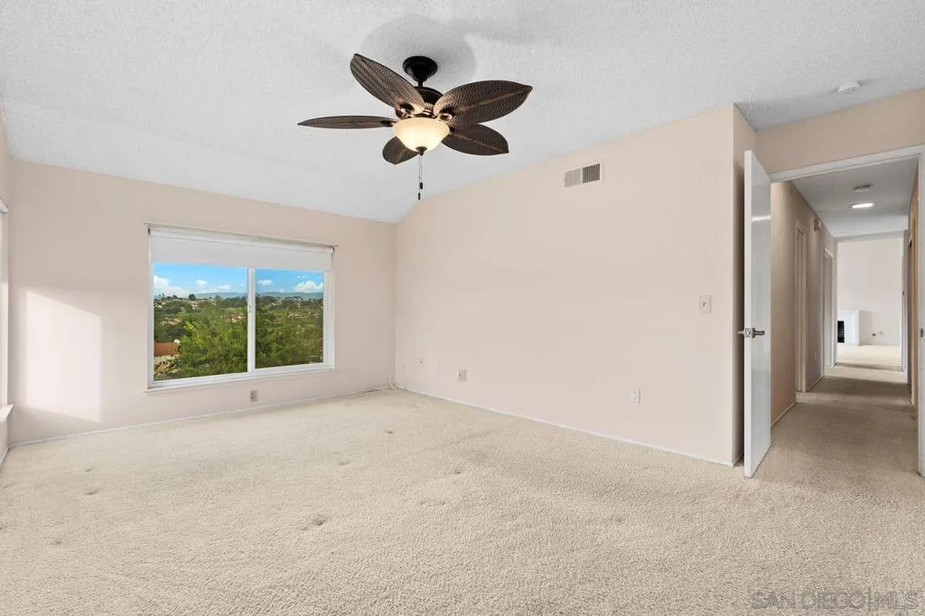 Enjoy stunning views of the Rancho Bernardo Mountains and Oaks North Golf Course from your living room and back patio. This spacious condo features dual pane windows throughout, beautifully refaced kitchen cabinets, a newer furnace, and a convenient chair lift for easy access to the upper level. The popular large floor plan includes 2 bedrooms plus a den/bedroom with elegant wood built-ins and an expansive 12 foot wide living room window that frames the picturesque golf course and mountain vistas. Nestled in a quiet setting near the golf course and the charming Bernardo Winery, this home offers the perfect blend of comfort, convenience, and resort style living. Oaks North is a premier 55+ golf course community in Rancho Bernardo, surrounding the scenic 27-hole Oaks North Executive Golf Course. This golf cart friendly neighborhood is conveniently located near local shopping, dining, and recreation. Located in the heart of Rancho Bernardo, residents enjoy San Diego’s near perfect climate and year-round activities in one of the area’s original master-planned communities. Access to the Oaks North Community Center features a full suite of amenities like swimming, tennis, fitness, and social activities all designed for active adult living.
