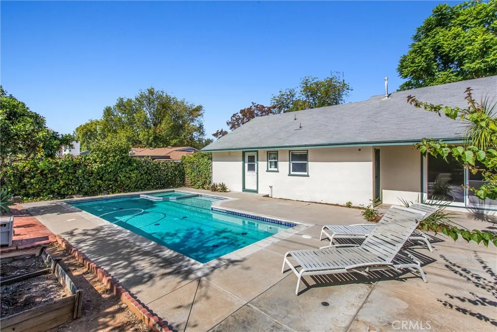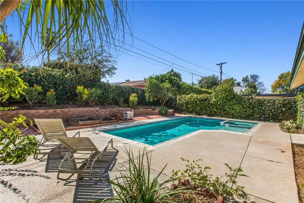 Welcome to 2838 Shenandoah Rd, a charming mid-century pool home tucked in the highly sought-after Cowboy Streets neighborhood of Riverside. Set on a peaceful, tree-lined street with award-winning schools nearby, this single-story residence offers timeless character, modern comfort, and an inviting layout designed for easy indoor-outdoor living. Step through the storybook front yard, where mature landscaping, fruit trees, and succulents frame a brick-lined path leading to the covered entry. Inside, the spacious living room welcomes you with warm natural light, a classic brick fireplace, and large sliding doors that open to the backyard. The adjoining dining nook flows into a bright, oversized kitchen featuring custom cabinetry, abundant storage, vintage tile backsplash, and stainless-steel appliances. A convenient indoor laundry area sits just off the kitchen. Down the hall, two generous bedrooms share a full vintage-style bath, while the private primary suite offers its own en-suite bath and peaceful views of the backyard greenery. Ceiling fans, dual-pane windows, and thoughtful design details enhance the home’s comfort year-round. Step outside to your own backyard retreat, complete with a sparkling pool and spa, raised garden beds, and lush mature landscaping that provides both beauty and privacy. The extended driveway and detached garage offer ample parking and flexibility for cars, toys, or workshop space. All this in a prime location near Victoria Elementary, Gage Middle, and Poly High, with easy access to the 91 Freeway, CBU, RCC, UCR, and Riverside’s thriving cultural scene downtown. A true blend of Riverside charm, convenience, and comfort, ready to welcome you home.