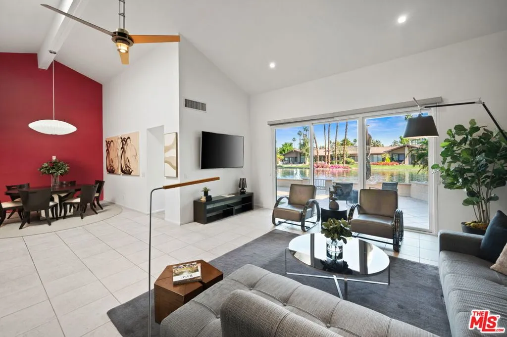Step inside this beautifully furnished, waterfront home at The Lakes Country Club in Palm Desert, offering the highly sought-after Laramie floor plan and resort-style living perfect for a seasonal desert retreat or full-time residence. The spacious living room features soaring ceilings, recessed lighting, sleek ceiling fans, and a stylish fireplace, while the fully remodeled kitchen boasts new cabinetry, quartz countertops, designer backsplash, premium appliances, and new flooring throughout. Energy-efficient upgrades include double-pane windows, doors, and dual HVAC zones for year-round comfort. The former atrium has been converted into an oversized den or home office with built-ins and a skylight and doubles as a third bedroom with twin Murphy beds. Each bedroom has its own en-suite bath, and the large rear patio invites you to relax and take in tranquil lake views. With world-class golf, racquet sports, fitness, and social amenities, The Lakes Country Club is one of the Coachella Valley’s premier private communities for luxury desert living.