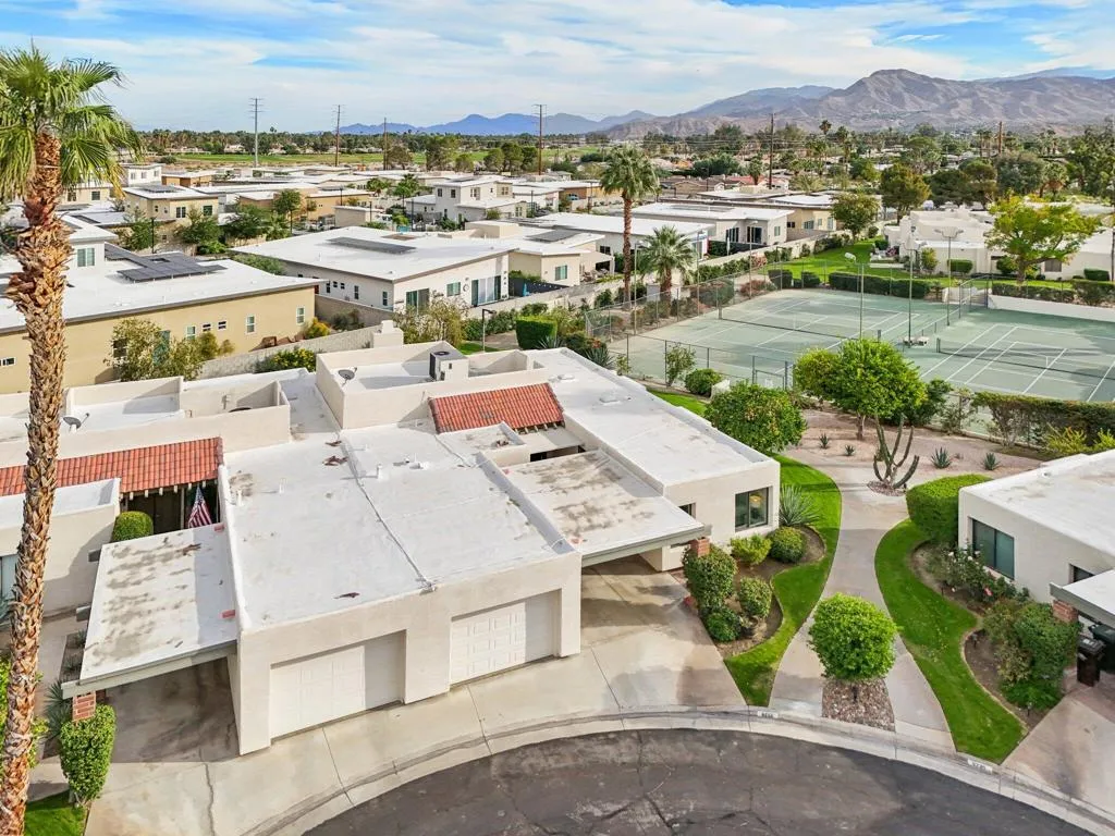 Welcome to Tahquitz Creek Villas, a gated community in South Palm Springs offering resort-style living with 3 sparkling pools, a spa, tennis courts, and a pickleball court. This fully renovated condo is truly turn-key–every detail was thoughtfully updated in 2023/2024 to create a modern, effortless desert retreat. The kitchen renovation features a redesigned layout with a highly functional kitchen island that provides abundant storage and serves as a great centerpiece for entertaining. Additional upgrades include a pot filler, wine fridge, separate beverage fridge, new appliances, and a water filtration system serving both the pot filler and refrigerator. Throughout the home, you’ll find new dual-paned windows, new sliding patio doors, double front entry doors, updated flooring, lighting, kitchen, and bathrooms, plus fresh paint on all walls and ceilings. Outdoor living is exceptional. The expansive back patio–one of the largest in the community–features a built-in gas BBQ, a fire table with large umbrellas for shaded, comfortable seating, and a dining table with an umbrella, all while still leaving plenty of open space. It’s truly designed for effortless desert entertaining. The front and back doors are enhanced with Alumawood trellises for added sun protection. This premium lot offers beautiful eastern views from the back and stunning western mountain views from the front. The neighborhood is peaceful and quiet. Offered turn-key furnished, this home reflects true pride of ownership–just bring your toothbrush and start enjoying the relaxed, resort-style lifestyle. An absolutely stunning property–homes of this quality rarely become available.