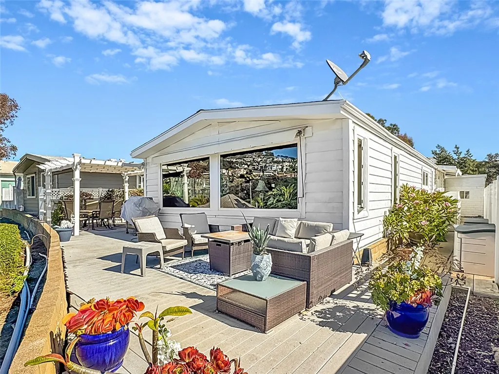 This oasis is a spacious 2 Bedroom/2 Bath with sprawling views of the canyons & minutes from the beach. Shorecliffs Terrace is an amazing 55+ community set on a beautiful golf course with breathtaking skyline views of the ocean all throughout. THE BEST PART IS YOU OWN THE LAND!!! There is NO LEASE ON THE LAND and it has all the amenities you could want! There is a fun clubhouse, which regularly holds events for the resident, as well as their friends & family that range from arts & crafts to dancing & many other community activities or events. The incredible amenities also include a pool, jacuzzi, gym, ping pong tables, pool tables, lounge areas, a ball room, & an RV lot.