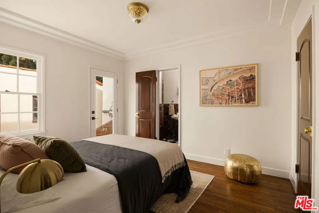 Tucked on a peaceful corner lot in iconic Leimert Park, this beautifully restored Spanish Revival home greets you with a romantic courtyard shaded by a graceful olive tree. Step inside to a sun-soaked living room featuring original hand-troweled plasterwork, soaring 9-foot beamed ceilings, a wet bar, classic moldings, a cozy fireplace, and a stunning picture window. Rich oak hardwood floors flow throughout, elevating every space with timeless warmth. The fully updated chef’s kitchen blends modern convenience with undeniable charm, complete with a delightful breakfast nook and ceiling details worthy of an art gallery. The period character continues into the laundry room, where thoughtful vintage touches like a built-in drying rack, ironing board, and a nostalgic milk door make this home truly special.You’ll find three generously sized bedrooms, including two en-suite retreats that open to the backyard deck. Out back, enjoy an outdoor kitchen and a private yard designed for relaxation and effortless entertaining. It truly feels like a personal getaway.A detached two-car garage offers even more flexibility. With thoughtful upgrades throughout including a new roof, HVAC, updated plumbing, new electrical wiring, and a 200-amp panel, this home is ready to welcome its next chapter. All of this is just minutes from Kenneth Hahn Park, the Culver City Stairs, and beloved LA gems like Post & Beam, Somerville and Jon & Vinny’s. Your dream home is here, make it yours.