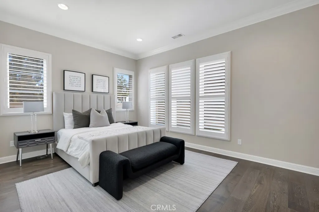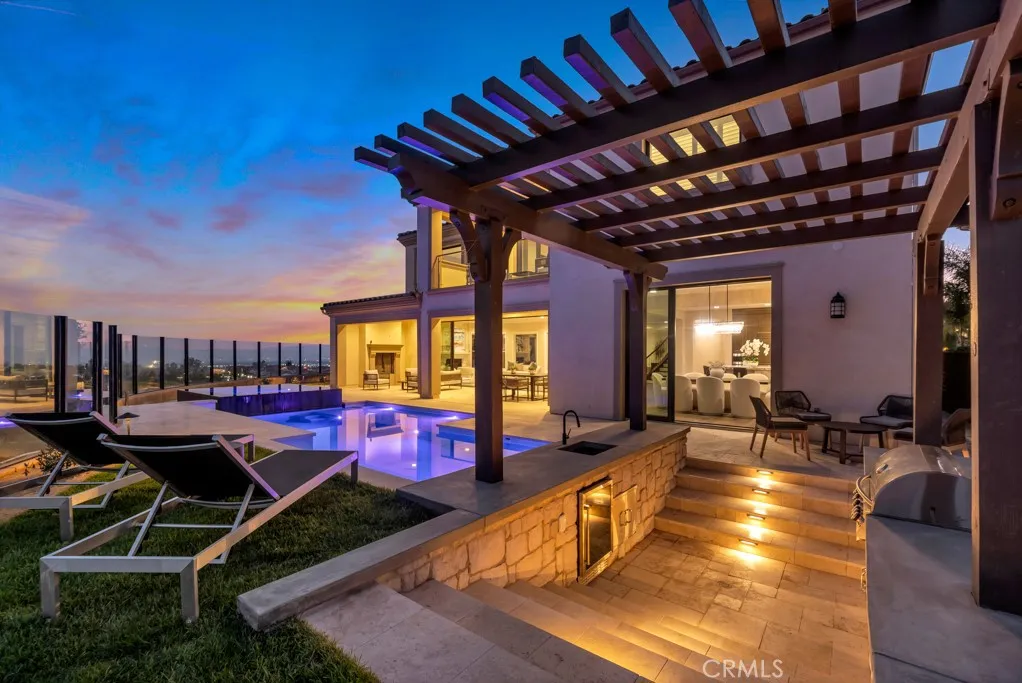 Will consider rent with option to purchase. Stunning luxury estate with panoramic views, ideally positioned at the end of a peaceful cul-de-sac in the exclusive, 24-hour guard-gated Westcliffe at Porter Ranch community. One of the larger properties in the neighborhood, this impressive Spanish Colonial Palisades model by Toll Brothers offers 5,710 square feet of refined living space, featuring 5 bedrooms, 5.5 baths, and an additional flexible room located just behind the kitchen. Fully reimagined in 2025 with a complete interior renovation and landscape redesign, the home showcases dark-stained white oak hardwood floors throughout, natural stone countertops, and luxury appliances from Sub-Zero and Wolf. Expansive multi-panel glass doors open to the patio and courtyard, creating a seamless indoor/outdoor flow ideal for entertaining. The newly completed pool, spa, and outdoor kitchen (finished September 2025) are surrounded by travertine pavers, lush softscaping, and wireless automated pool equipment, delivering a true resort-style experience in a private, tranquil setting.
