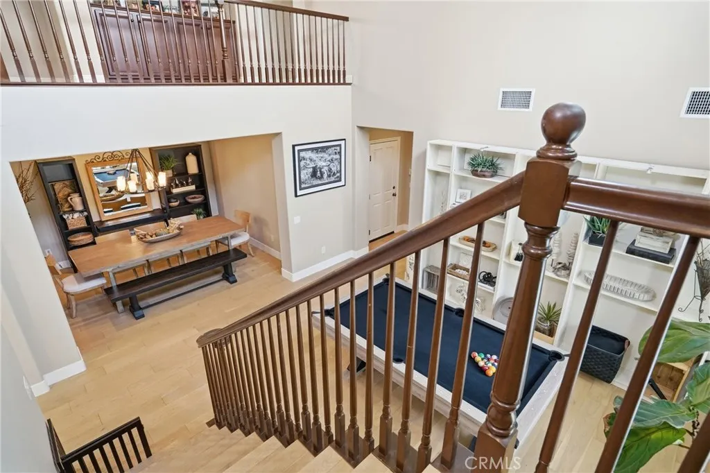 Welcome to this beautiful 4 bedrooms 3 bath home in Big Sky with 3 car tandem garage that sits on one of the largest lots in Tioga community, a well-landscaped, private premier corner lot with gorgeous views from the primary bedroom! Upon entering you’ll be greeted with high volume ceilings in Living room & formal dining room! Owner recently paid over $75K on all new engineered hardwood floors upstairs & downstairs, plus fully paid off solar, plus Tesla charging station! Per owner, there is no payments for electric bill with the solar panels! Gorgeous plantation shutters downstairs! Family room has gas fireplace, ceiling fan and built-in entertainment center! Remodeled kitchen with granite counters, designed backsplash, resurfaced white cabinets, recessed lights, stainless steel appliances, butlers pantry and wine closet! Large master suite has ceiling fan, his-&-her travertine counters in bath, separate soaking tub and custom travertine shower! It sits on the cul-de-sac of the well know street for its incredible holiday decorations! Private wrap-around backyard offers built-in BBQ with sitting area, grassy area and putting green! Get up, get out and go get it!
