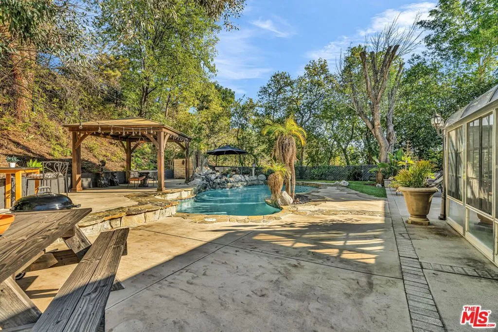 Welcome to your own lushly landscaped private compound on nearly half an acre at the end of a quiet cul-de-sac. This bright and sunny 3-BR, 2-BA property with a sparkling pool offers exceptional privacy with only one neighbor, a fully permitted ADU with its own address, and a large permitted sunroom. Inside the main house, you’ll find a bright, open layout featuring a beautiful chef’s kitchen, remodeled bathrooms, and a spacious primary suite with walk-in closet and spa-style soaking tub. The primary suite and one of the two guest bedrooms open directly to multiple patios and the pool area, blending indoor comfort with resort-style living. Outside, the very private yard features a pool with waterfall, multiple seating areas, and expansive patios that provide endless options for entertaining, relaxation, and recreation. The permitted ADU, built in 2019 with high-quality materials and workmanship, is a detached studio ideal for guests, extended family, home office use, or rental income. All of this is just moments from local parks, playgrounds, shopping, dining, freeway access, and top-rated schools, the perfect blend of peaceful seclusion and everyday convenience. Don’t miss this rare West Hills property offering privacy, land, flexibility, and true Southern California indoor-outdoor living.