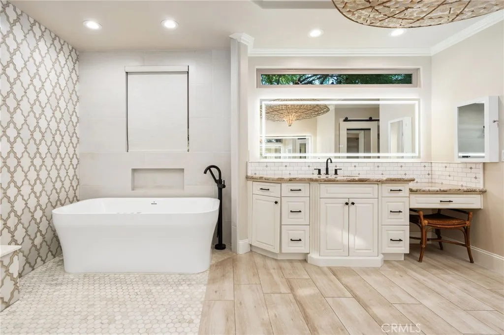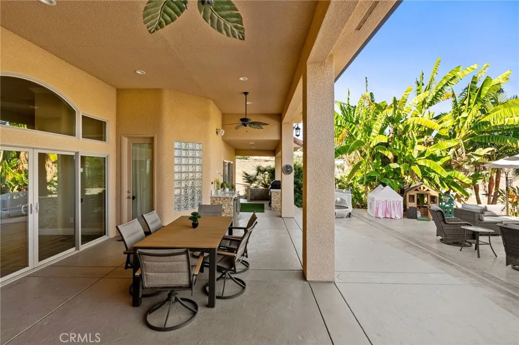 Outside, your private resort awaits with a vanishing-edge pool, spa, gas fire pit, tiki torches, and fire bowls—all operated with a single switch. Heated walkways lead to the covered outdoor bar and kitchen with refrigerator, ice machine, TV, and natural-gas BBQ hookups. Landscaping is maintained on timers for easy upkeep.