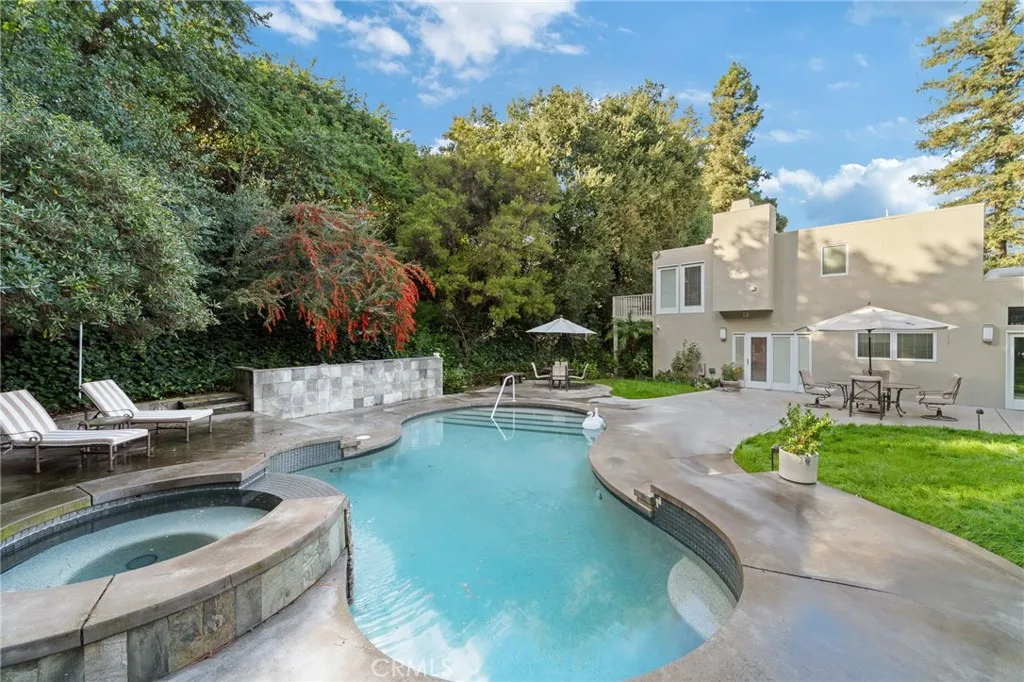 Welcome to your private retreat estate in the prestigious Encino Hills, peacefully tucked south of Ventura Boulevard at the top of a quiet cul-de-sac. 6 bedrooms, 5 en-suite, 5.5 total baths, Formal Living, Family and Dining rooms. Breakfast Area, utility room, butlers pantry, 3 fireplaces, private elevator, Pool, Spa, 3 zoned AC…nearly 5000 Sq.ft on 15,000 ft lot!! Originally built in 1965 and reimagined with a major expansion in 2004 blends luxury, warmth, and timeless design with many 15 ft. ceilings and skylights. Oversized two-car garage with storage capacity rarely found in residential homes. Chefs kitchen w/ designer hardware, dual refrigerators, dual ovens, and premium Sub-Zero and Thermador appliances. Thoughtful details appear throughout—Venetian plaster, built-in glass curio. Sitting well above the street, it enjoys exceptional serenity and complete privacy. A dramatic 50-foot waterfall feature creates a true five-star resort entrance. The primary suite, accessible by private elevator or stairs, is an oasis of its own with dual walk-in closets, a spa-inspired bathroom, and a peaceful private balcony overlooking the surrounding trees. The backyard feels like a mountain escape, surrounded by mature pine, elm, and oak trees. Enjoy a large swimming pool with attached spa, multiple areas for lounging and outdoor dining, and complete seclusion from the outside world. 3601 Cananea Drive is more than a home — it’s a sanctuary. A rare blend of luxury, privacy, and resort-style living high above the city.