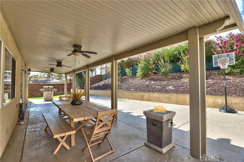 Welcome home to this stunning 5-bedroom, 3-bath residence showcasing numerous recent upgrades and thoughtful details throughout. Step inside to find new luxury vinyl plank flooring and plush carpet in the bedrooms, creating a warm and inviting atmosphere. The spacious kitchen features stainless steel appliances, granite countertops, and an open layout perfect for entertaining. Relax in the cozy living room with a gas fireplace, or retreat to the downstairs bedroom with a full bath—ideal for guests or multi-generational living. Upstairs, you’ll find four additional bedrooms, including a spa-like primary suite with a jacuzzi tub, separate tiled shower, and two walk-in closets. The convenient upstairs laundry room adds everyday practicality. Enjoy energy efficiency and savings with solar panels covering the entire electric bill and a Level 2 EV plug in the garage. Outdoor living is easy with a professionally hardscaped, low-maintenance front yard and a beautifully designed backyard featuring an Alumawood patio cover, stamped concrete patio, and a firepit with built-in seating—perfect for entertaining year-round. A storage shed is also included for extra space. Located in the highly desirable Temecula school district and with no HOA, this home offers both comfort and value. Don’t miss the opportunity to make this exceptional property your own!