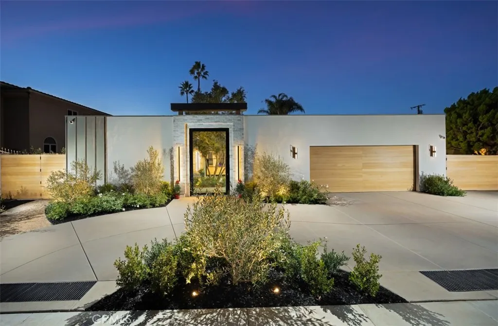 A work of modern art, 1717 Irvine Avenue emerges as a contemporary haven where architecture, nature, and luxury coexist in perfect harmony. Newly reconstructed with uncompromising craftsmanship and a bold artistic sensibility, this residence transcends traditional living. A monumental 10-foot glass pivot door introduces the home with a dramatic reveal: indoor and outdoor spaces collapse into one fluid environment shaped by elemental beauty. A waterfall wall, lush living plant installations, and a mature olive tree bring nature into the core of the home, creating an ethereal threshold that feels both tranquil and unforgettable. Inside, a sweeping open floor plan grounds the home’s modern aesthetic. The living room, wrapped in disappearing glass walls, blurs the boundaries between inside and out and flows seamlessly into the gourmet kitchen. Here, custom cabinetry, a hidden walk-in pantry, striking stone surfaces, and top-tier Thermador appliances elevate the space into a functional work of art, anchored by an oversized waterfall quartzite island. The formal dining room glows beneath a statement chandelier and is framed by dual Thermador 92-bottle wine towers—an exquisite stage for intimate dinners or grand celebrations. The entertainer’s backyard extends the modern narrative with a saltwater pool and spa illuminated by micro-LED lighting, a fully realized outdoor kitchen and BBQ, and generous lounge areas. Whether in sunlight or beneath the glow of the evening lights, the outdoor environment evokes the serenity of a private resort. The primary suite serves as a luxurious retreat—beautifully composed with a sculptural soaking tub, glass-enclosed shower, dual vanities, and a custom walk-in closet. Three additional guest bedrooms feature bespoke closets and share a spa-level bath, while one of the guest bedrooms with custom built-ins can serve as an office, which adds elegant utility to the home’s thoughtful layout. Even the garage becomes part of the design narrative, finished at showroom quality with hexagon lighting, custom cabinetry, and designer flooring. Enhanced by premium technology throughout—including Waterstone fixtures, Lutron lighting control, dual-zone HVAC, central audio, and whole-home Wi-Fi expansion—this residence is as intelligent as it is striking. Positioned near the edge of Newport Beach’s treasured Back Bay, 1717 Irvine Avenue is not merely a home but a modern compound of curated luxuries, bold design, and seamless indoor-outdoor living.