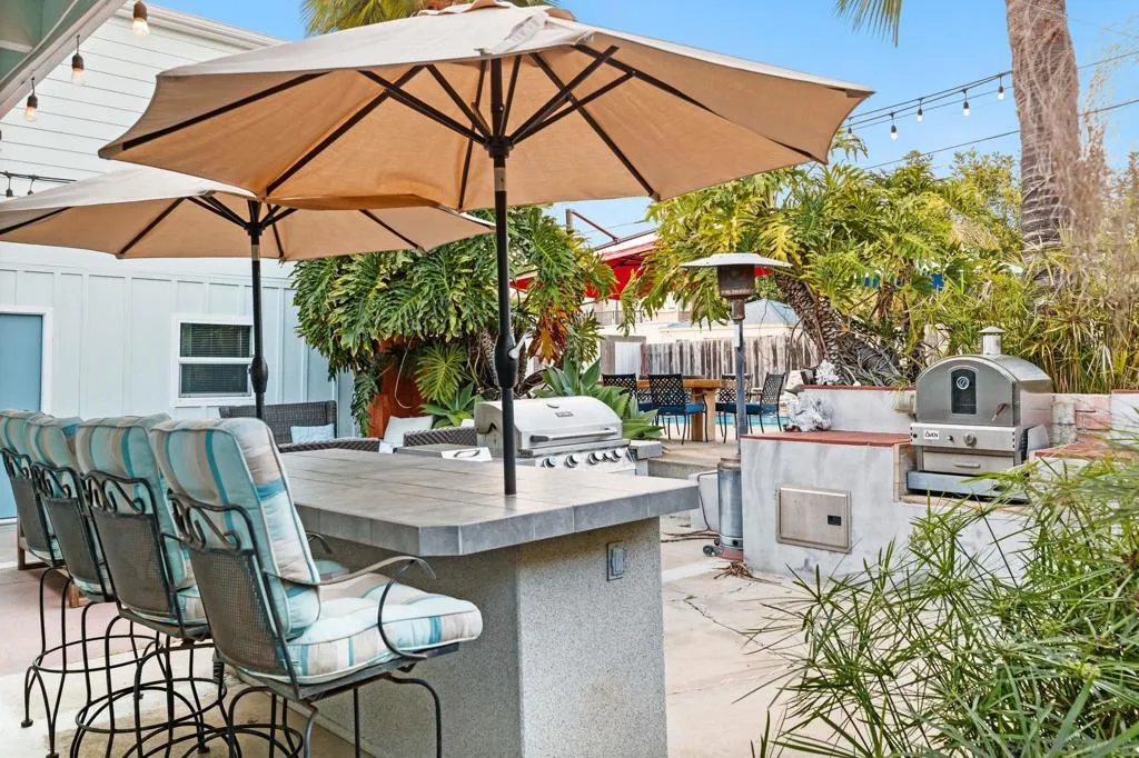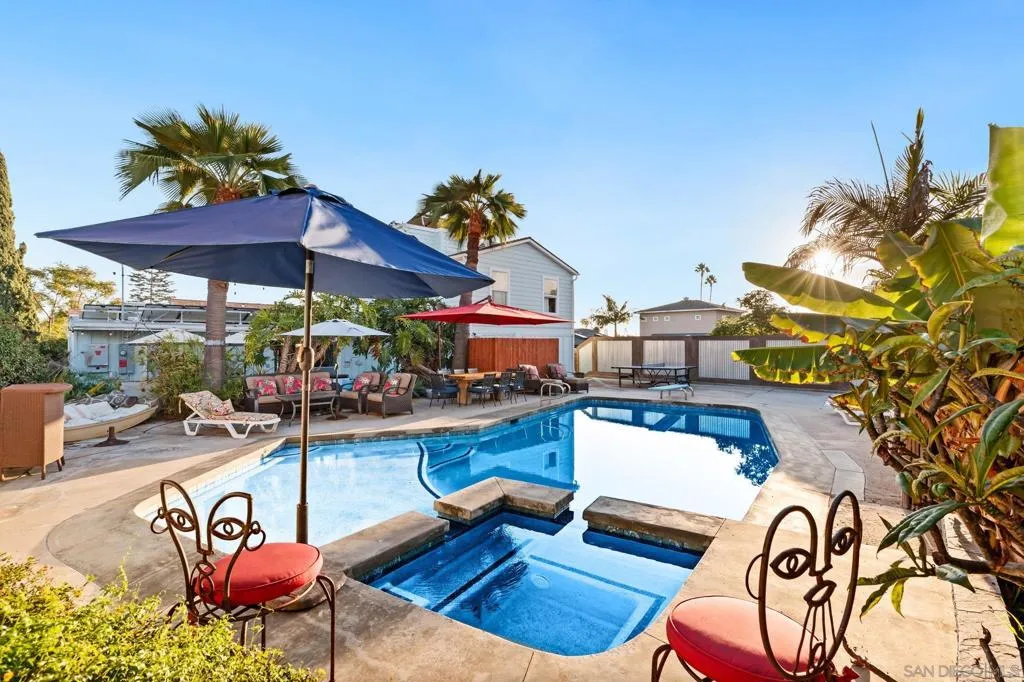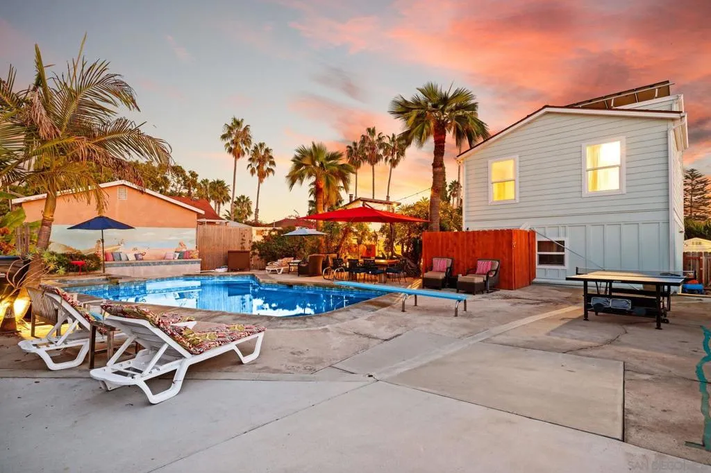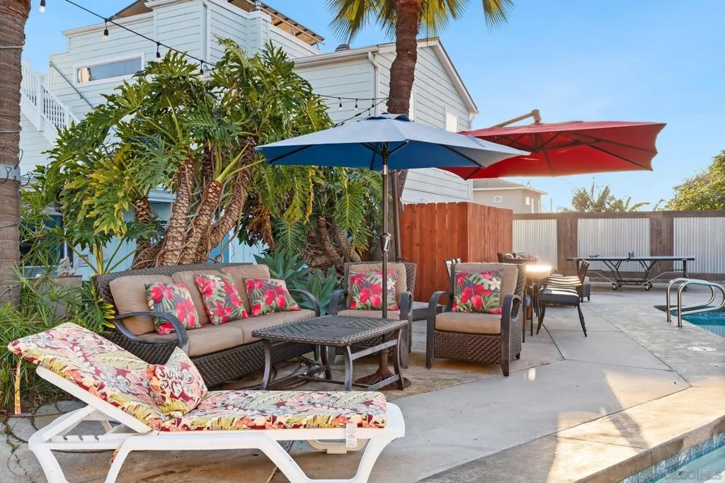 FURNISHED MIDTERM & LONG-TERM RENTAL — Stay & Play Pacific Beach: Pool, Spa & Rooftop Fun Spacious 5BR / 3.5BA La Jolla compound featuring two private units designed for relaxation and fun. The main home offers 3BR / 2.5BA with vibrant style, two living rooms, a fully equipped kitchen, dining area, and a stunning backyard oasis with saltwater pool, spa, firepit, ping pong, and outdoor kitchen with BBQ, pizza oven, and bar seating. Upstairs, a 2BR + loft suite adds modern-industrial flair with a full kitchen, remodeled bath, and rooftop deck showcasing panoramic ocean and city views. Sleeping Setup (max 12): Main Home – King • Queen Murphy • Queen Daybed Upper Unit – Queen • 2 Twins (convertible to King) • Loft King (not suitable for children) 3.5 Baths Additional features include a dedicated salon/office with private bath—perfect for getting ready, content creation, or remote work. Outdoor living shines with lush landscaping, alfresco dining, and string-lit evenings by the firepit. Ideal for large families, groups, or extended-stay guests seeking a private retreat close to beaches, shops, and dining. Available fully furnished only. Rates reflect short-term rental pricing and vary by season and length of stay. Published amounts are estimates; final pricing, fees, and availability are subject to change until a signed agreement. Please inquire for an exact quote. STR-06720L • TOT-603941