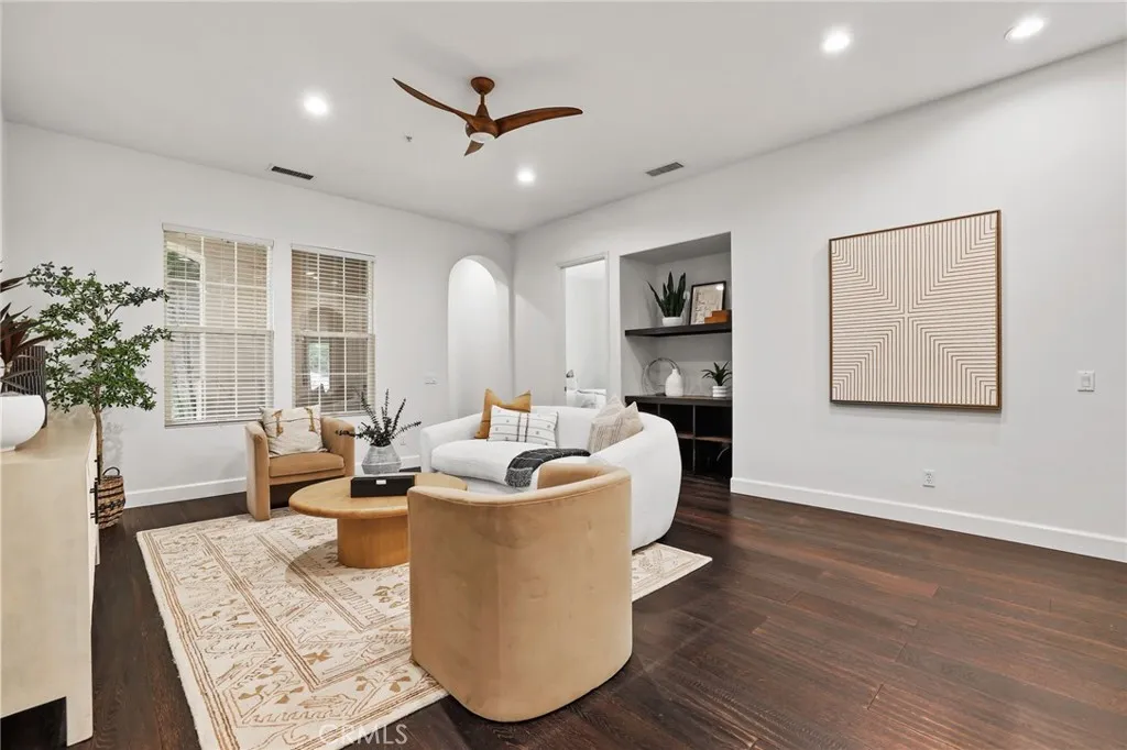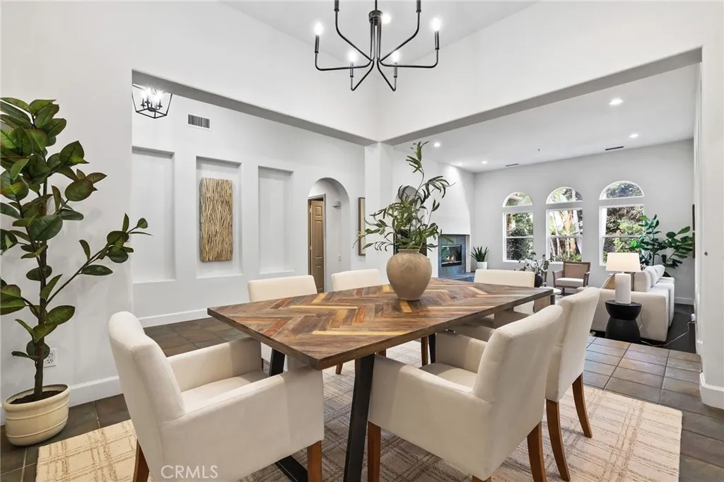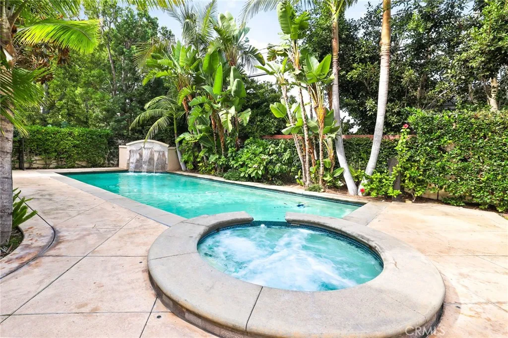 Tucked behind the gates of the prestigious 24-hour guarded Madrid community, this exquisite four bedroom three bath single-level residence offers the perfect blend of elegance, comfort, and resort-style living. A carefully landscaped gated courtyard and graceful archways set the tone as you step inside this beautifully designed home. The open-concept floor plan flows effortlessly, with arched transitions leading from one inviting space to the next. An elevated dining area overlooks the expansive living room and kitchen—ideal for hosting gatherings large or small. The chef’s kitchen impresses with a grand center island featuring a built-in cooktop, double ovens, a convenient office nook, and French doors that open to an entertainer’s dream backyard. Step outside to enjoy your private oasis complete with a covered gazebo, sparkling saltwater pool, and relaxing spa—perfect for outdoor dining and leisure. A separate family room with a half bath provides a versatile space for movie nights, a playroom, or even a home studio. The luxurious primary suite is a true retreat, highlighted by a stunning stone fireplace and an adjoining sitting room with built-in shelving—ideal for a home library, office, or fitness area. French doors provide direct access to the backyard, while archways lead to the spa-inspired primary bath featuring dual vanities, a walk-in shower, a soaking tub, and an impressive walk-in closet. The three generously sized secondary bedrooms, a well-appointed laundry room with abundant storage, and direct access to the three-car garage add everyday convenience. With its blend of sophistication and comfort, this home truly embodies the best of luxury living in one of Tustin’s most coveted communities. Welcome yourself home to 12215 Wyne Court.