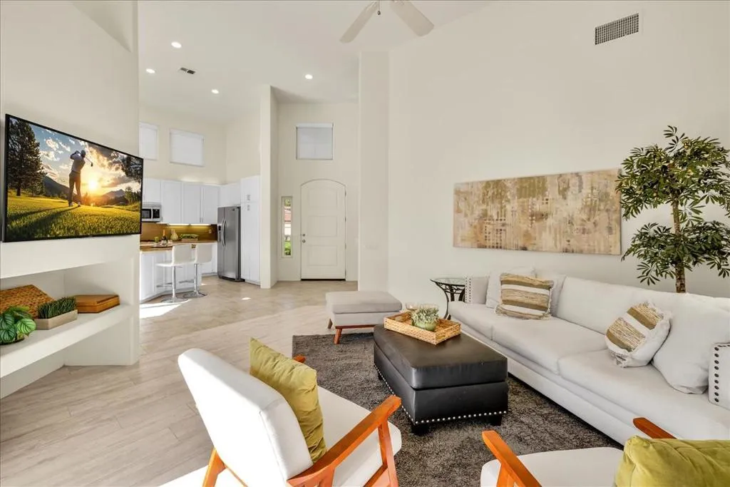 Rarely does an opportunity emerge to secure a residence of this caliber with a newly improved price point. This light and bright 2-bedroom, 2.5-bathroom Tennis Casita offers more than just a home; it provides a gateway to the quintessential desert lifestyle, curated for those who demand excellence. The experience begins at the curb, where a new pavered walkway sets a tone of modern tranquility. Inside, the open-concept design features expansive sightlines that frame the lush, palm-fringed greenbelts like a living piece of art. Whether hosting an intimate gathering or enjoying a quiet morning in the transitional kitchen–complete with freshly painted cabinetry–the home radiates a sense of light and ease. Secure your place in this prestigious community just as it anticipates the grand reveal of a $26 Million clubhouse renovation; this is your refined desert chapter, professionally prepared to show in its best light and ready to begin.