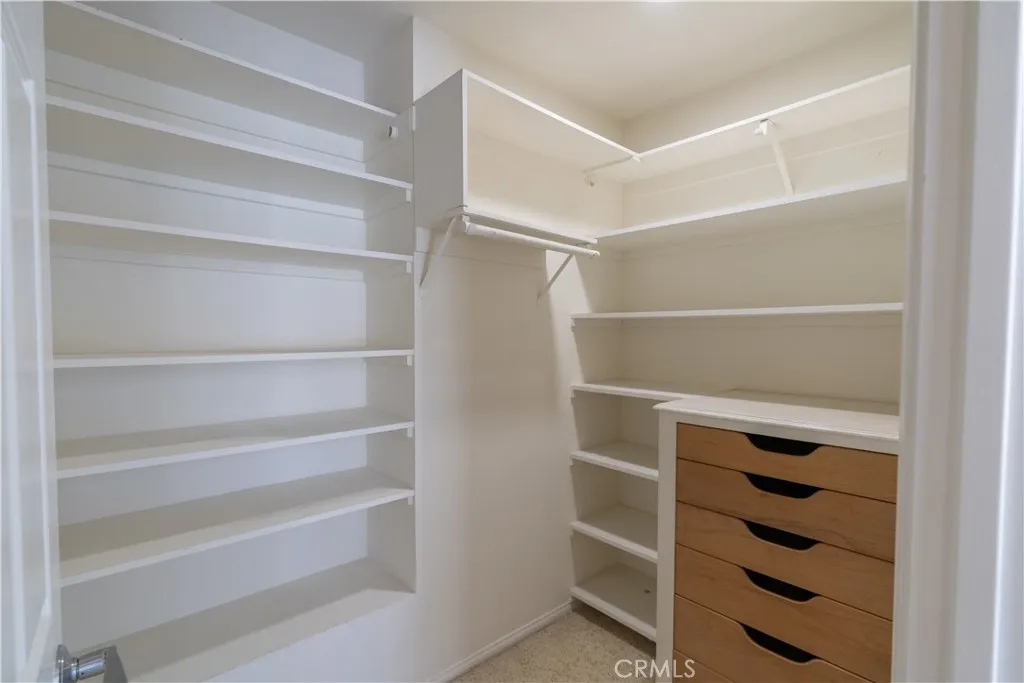 Upstairs, two spacious en-suite bedrooms boast high ceilings and walk-in closets. The expansive primary suite showcases vaulted, beamed ceilings and a luxurious bath with dual sinks, spa tub, and separate shower. Convenient upstairs laundry sits near both bedrooms for added functionality.