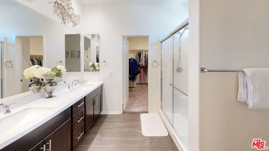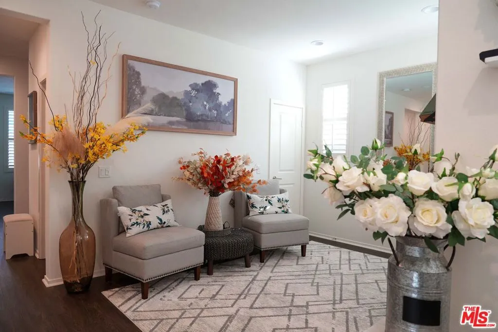 Welcome to this stunning Skyline Sola home, where modern elegance meets functional design. This model-perfect two-story residence offers 3 bedrooms, 2.5 bathrooms, and a solar energy system, making it both stylish and efficient. Designed with an open-concept layout, the home is perfect for entertaining. The gourmet kitchen is a chef s dream, featuring quartz countertops, a striking backsplash, GE stainless steel appliances, ample cabinetry, and pantry. Large sliding doors lead to a beautifully manicured backyard, creating seamless indoor-outdoor living. The primary suite is a light-filled retreat with recessed lighting, a walk-in closet, and a spa-like ensuite with dual sinks and an oversized shower. Upstairs, you ll also find a spacious laundry room, two additional bedrooms, and a flexible entry area on the first floor, that’s ideal for a home office. This enclosed two-car garage offers direct access to the home, making it easy to bring in groceries or other items. It features a tiled floor, full air conditioning, and an electric vehicle charging station. With its versatile design, this space can effortlessly be transformed into a stylish home office or additional living quarters, providing both functionality and comfort. This home is just steps from The Lookout, a premier community space featuring a playground, clubhouse, sparkling pool and spa, kid s wading pool, splash pad, BBQ area, and a state-of-the-art glass-enclosed gym all with breathtaking valley views. Enjoy access to scenic hiking trails, a brand-new shopping center, and easy freeway access via Golden Valley and Whites Canyon. Don t miss out on this exceptional home in one of Santa Clarita s most sought-after communities schedule a showing today!