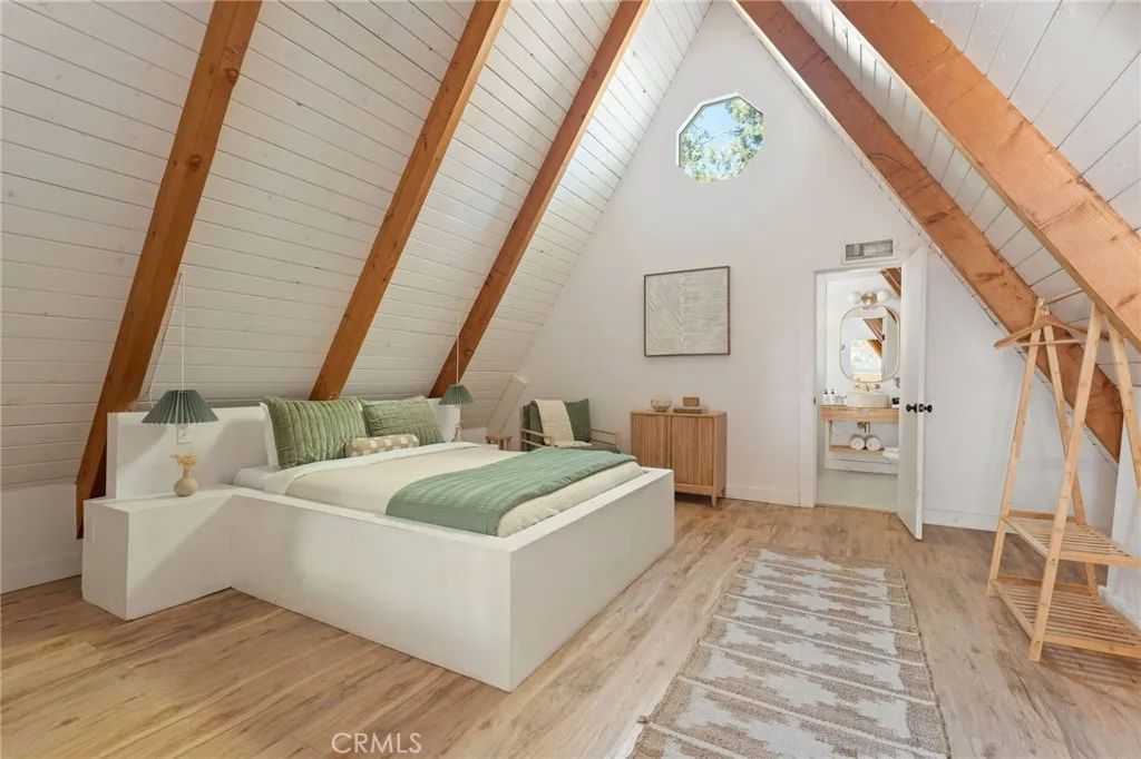 As one of SavvyBear’s premier, top-producing Airbnbs, this cabin boasts impressive numbers that make it a standout investment opportunity. Discover the perfect blend of modern comfort, mountain charm, and proven income potential in this fully turnkey, beautifully remodeled retreat. Tucked away in a quiet area of town, this home offers over 1,500 sq ft of living space designed for both relaxation and entertaining. Step into the open-concept great room, where a dramatic wall of windows floods the space with natural light and frames peaceful treetop views. The upgraded kitchen features stylish finishes, modern appliances, and seamless flow to the living and dining areas—creating an inviting environment for guests and families to gather. With two spacious bedrooms, two remodeled bathrooms, and a versatile loft, the layout comfortably accommodates groups while maintaining privacy for overnight stays. Every detail has been thoughtfully curated to enhance both guest experience and long-term durability. Outside, the landscaped backyard offers multiple areas to unwind, including a private spa, mature trees, and open patio space—an ideal setting after a day at the lake, trails, or slopes. Located just minutes from Oktoberfest, local restaurants, hiking trails, and popular Big Bear attractions, this property provides exceptional convenience while maintaining a peaceful setting. Whether you’re seeking a high-performing income property or a modern mountain getaway for personal use, this turnkey gem is fully prepared to enjoy and continue generating strong rental returns from day one.