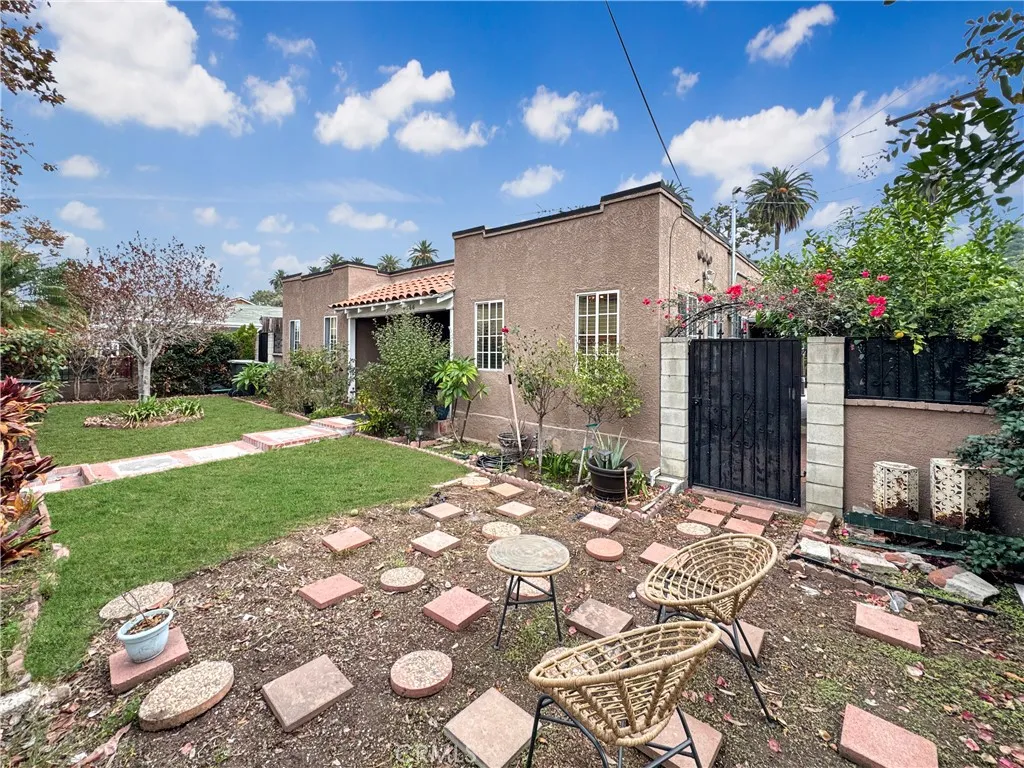 Welcome to your ideal multigenerational living opportunity! This wonderful corner-lot property offers two separate living spaces, perfect for those seeking togetherness while maintaining privacy. The main house features three bedrooms with a possible 4th bedroom, two bathrooms, a spacious living and dining area, and a large kitchen ideal for gathering and entertaining. There’s also a bonus room currently used as a home gym, providing plenty of versatility for your lifestyle needs. The second structure was once a garage but has been thoughtfully converted into a beautiful studio with a modern upgraded bathroom and a convenient kitchenette — perfect for multigenerational living, guest accommodations, or a private workspace. A wrought iron gate offers separate access to the studio without disturbing the main residence. Enjoy the outdoors with a large covered patio, perfect for relaxing or entertaining in shade and privacy. The fenced front yard enhances security and curb appeal, while mature fruit trees, lush landscaping, and two large storage sheds add both charm and functionality. With ample street parking and easy access from its corner location, this property combines comfort, flexibility, and privacy in one exceptional package.