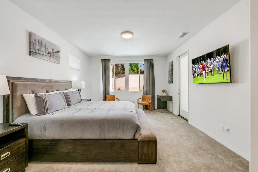 Imagine securing a 2.625% interest rate in today’s market. That alone makes this home incredibly rare–but it’s just the beginning. With an assumable loan of approximately $320,000 (subject to lender approval), this property offers a once-in-a-generation opportunity to enjoy luxury desert living with a payment most buyers can no longer touch. Whether you’re an investor focused on strong returns or a buyer looking for smart, long-term value, this home delivers on every level.Located in a highly sought-after, short-term-rental-approved community with low HOA fees, this home sits minutes from the world-famous Coachella and Stagecoach festival grounds, placing it in one of the most in-demand rental markets in the Coachella Valley. Income potential here isn’t theoretical–it’s built into the location.Inside, the home features the largest Gallery floor plan, designed for both comfort and connection. The bright, open great room centers around a cozy fireplace and flows seamlessly to a covered patio, creating the ideal indoor-outdoor lifestyle. The gourmet kitchen is both stylish and functional, offering white cabinetry, granite countertops, a large center island, and a walk-in pantry–perfect for entertaining or hosting guests.The primary suite is a true retreat, with backyard access, dual vanities, and a spacious walk-in closet. Two generously sized guest bedrooms, a shared bath, and a convenient powder room provide flexibility for family, friends, or short-term guests. Thoughtful upgrades throughout–including 9-foot ceilings, 8-foot doors, and a finished garage with golf cart space–add comfort and polish.Tucked away on a quiet cul-de-sac near a peaceful water feature, the home also includes access to resort-style amenities such as pools, spas, tennis, pickleball, bocce ball, and a fitness center. It’s the kind of place where every stay feels like a getaway.With exceptional financing, STR approval, and a move-in-ready interior, this is the type of opportunity buyers wait years to find. Homes like this don’t last–especially ones that make this much financial sense.