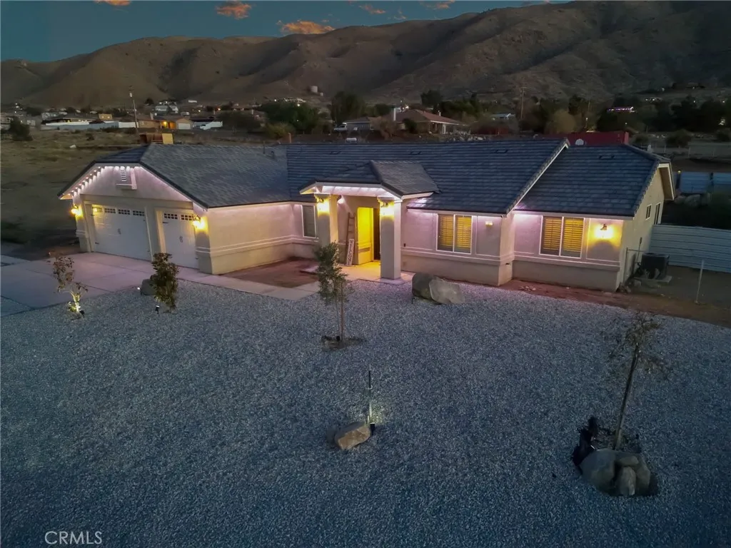 Welcome home to the perfect blend of luxury and wide-open country living in Apple Valley. This 2021-built beauty sits on over an acre of usable land and captures the heart of the desert with spectacular sunrises and sunsets, mountain backdrops, and room for horses and farm animals. Spend your days relaxing in the custom saltwater pool and spa, hosting gatherings on the spacious deck, or enjoying quiet moments in your beautifully designed outdoor spaces. The front yard offers low-maintenance beauty with custom rock landscaping, trees, and elegant night lighting. Inside, every detail shines – 4 spacious bedrooms, 2.5 impeccable appointed baths, and 2089 sq. ft. of living space. This home boasts plush bedroom carpeting, premium waterproof wood-look flooring, designer lighting, lovely shutters throughout and a custom front door that elevates curb appeal. The gourmet country kitchen shines with quartz countertops, black stainless steel appliances, a large island, and custom cabinetry with abundant storage. Retreat to the luxurious master suite with a soaking tub, walk-in shower, dual sinks, and stylish black finishes. The oversized 3-car garage with ample lighting, concrete pathways connecting the garage and outdoor spaces rounds out this exceptional property.