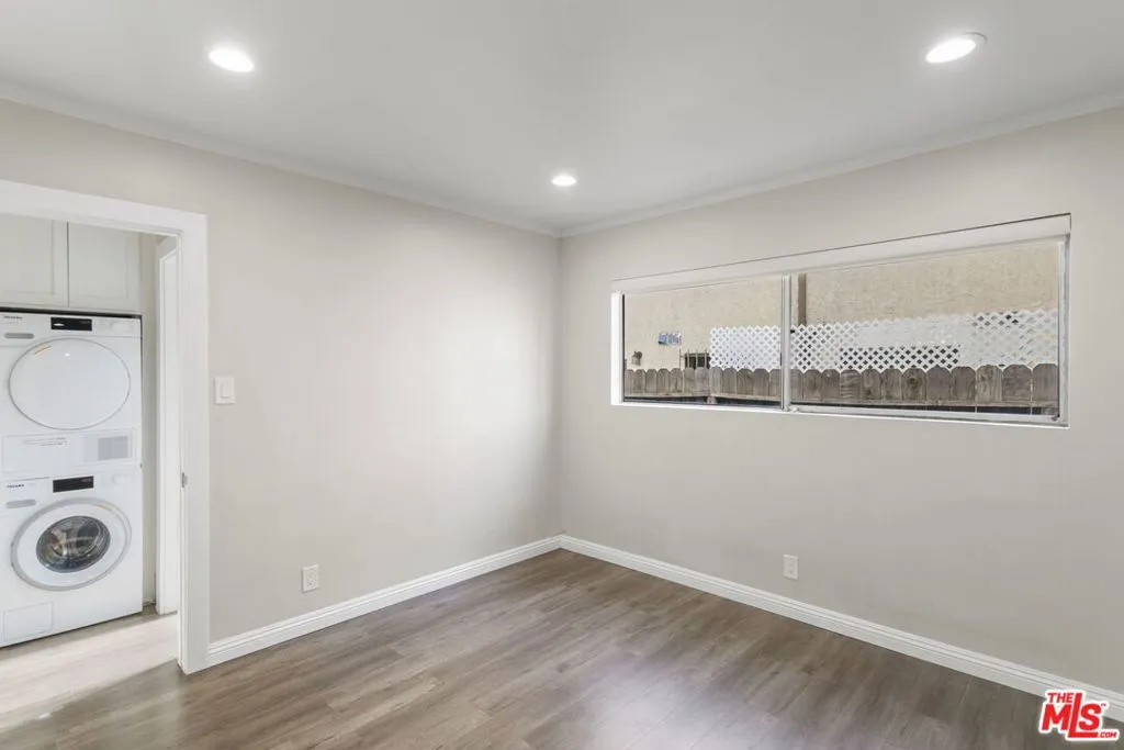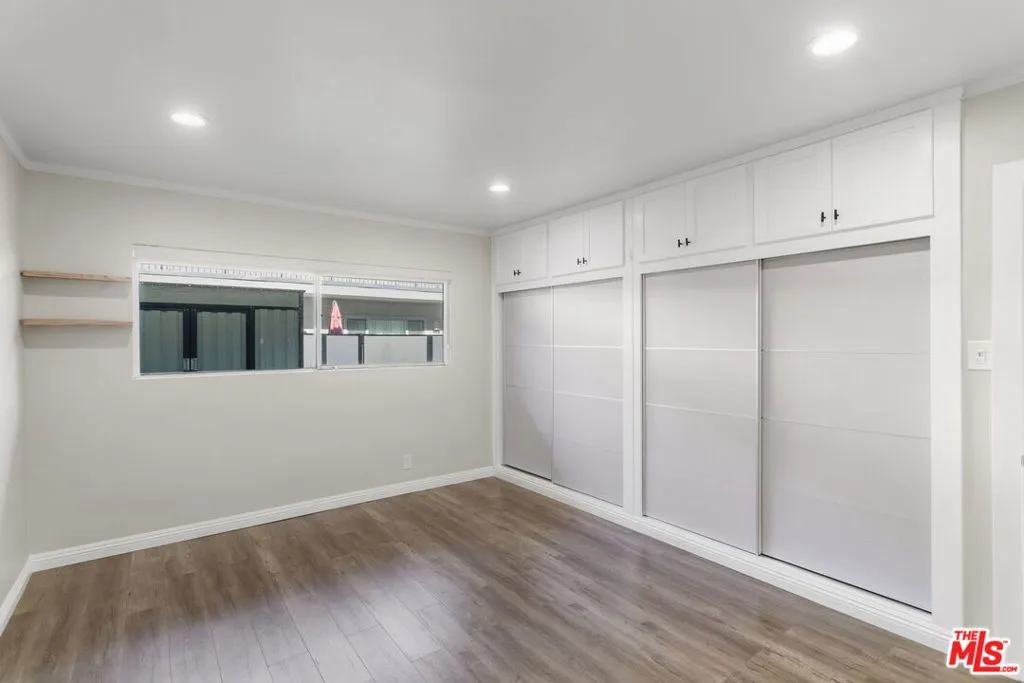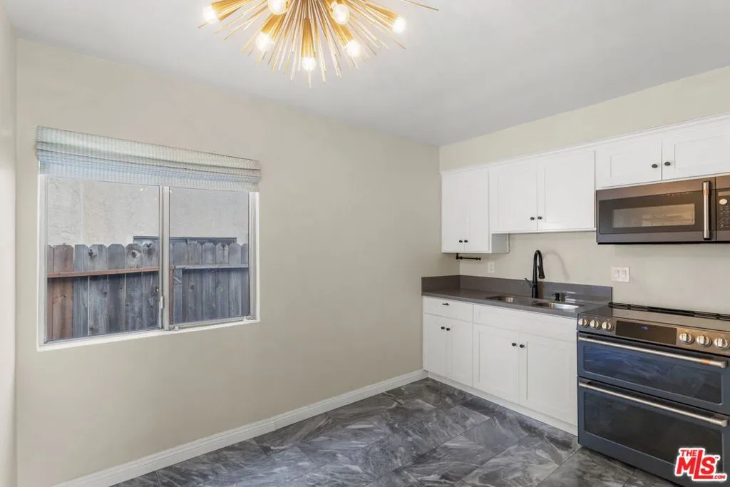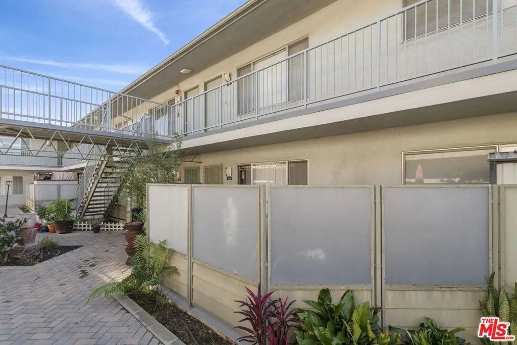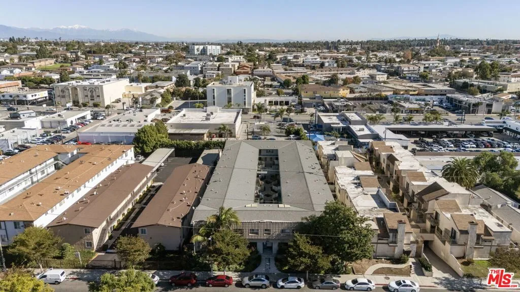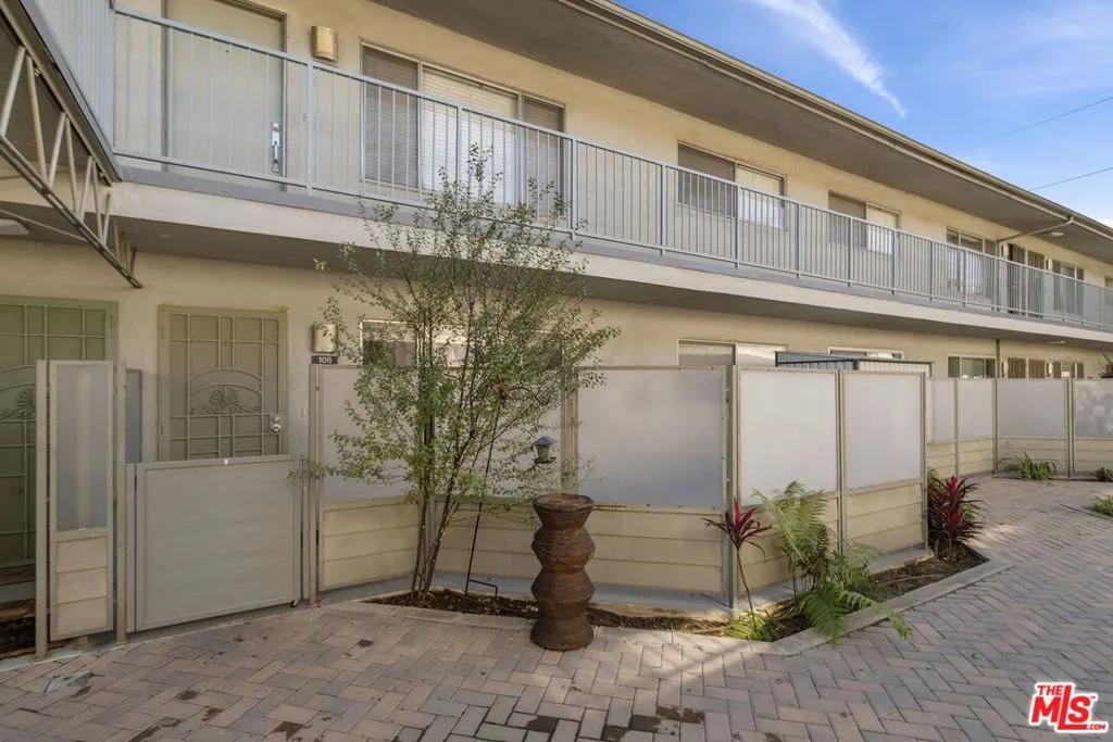 Discover this 2 bed 1 bath ground floor condo tucked inside a classic mid century courtyard community. A private enclosed patio sets the tone, an ideal spot to relax or enjoy a quiet moment outdoors. Step inside to a bright open living room with recessed lighting, built in shelving, and a large window that fills the space with natural light. The remodeled kitchen blends clean modern finishes with mid century flair, featuring white cabinets, stone countertops, newer appliances, and a sputnik style light above the dining area. The updated bathroom feels fresh and elegant with a stone top vanity, gold toned hardware, a black arched mirror, and a tiled shower/tub. Both bedrooms offer a minimalist calm aesthetic anchored by a custom floor to ceiling wardrobe system that maximizes storage. Enjoy in unit laundry, an extra storage closet, a private shed, and one secured subterranean parking space with access from Lamos Street. The complex offers secured entry, landscaped courtyards, and classic mid century design elements throughout. Located near Inglewood’s growing sports (Sofi and Intuit Dome) and entertainment district (Kia Forum), shopping, dining, public transportation, and convenient 405 access to the Westside and Beach Cities.