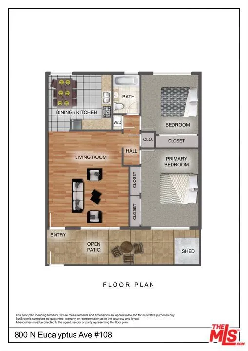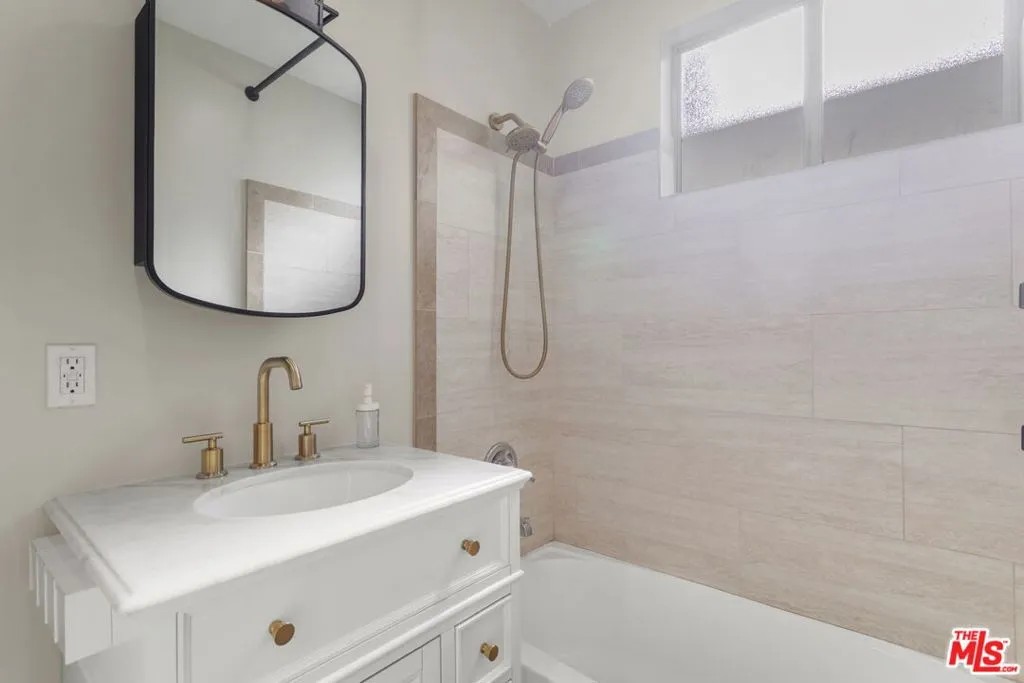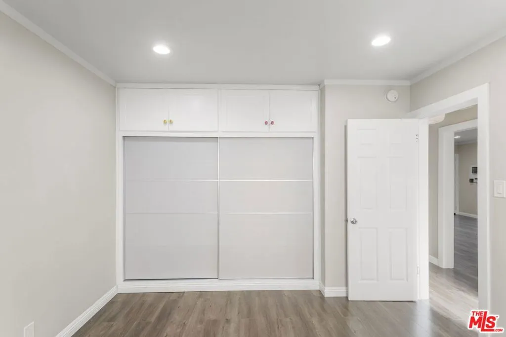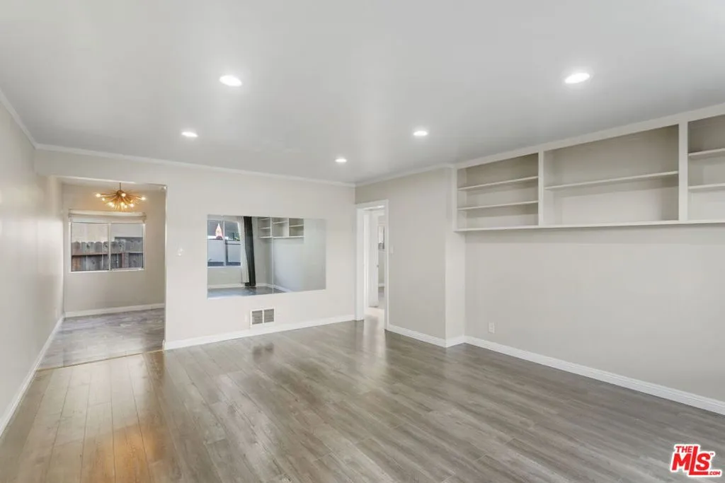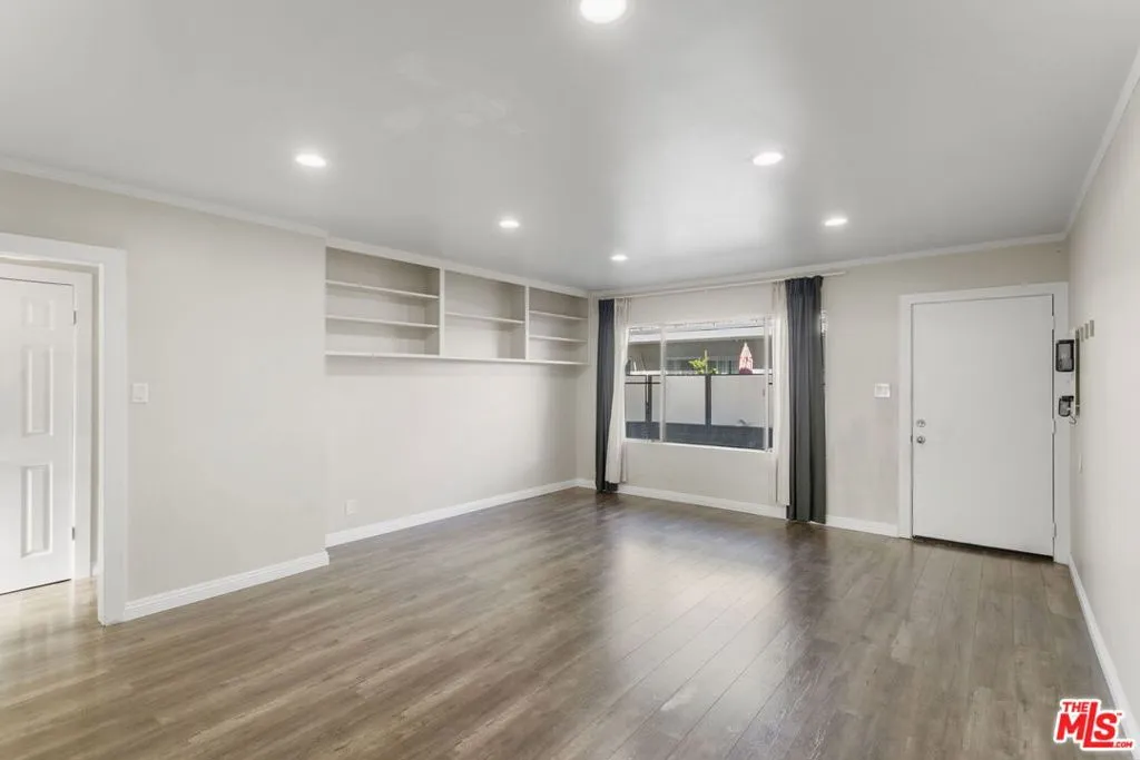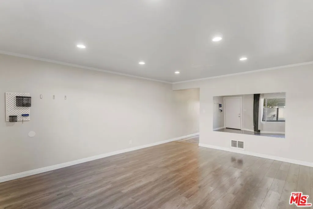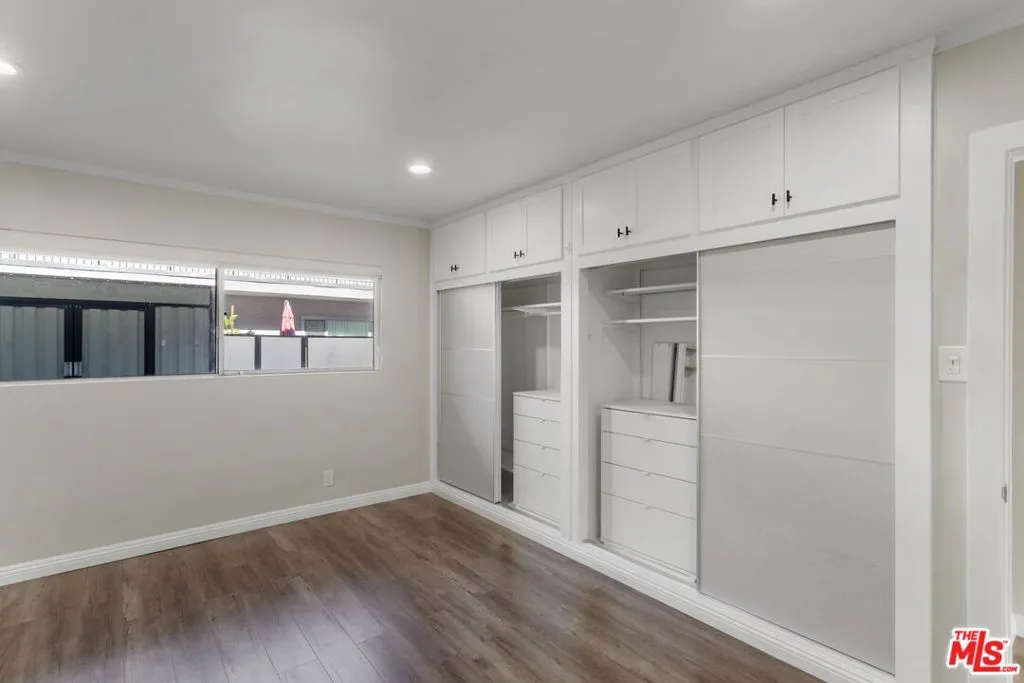 Discover this 2 bed 1 bath ground floor condo tucked inside a classic mid century courtyard community. A private enclosed patio sets the tone, an ideal spot to relax or enjoy a quiet moment outdoors. Step inside to a bright open living room with recessed lighting, built in shelving, and a large window that fills the space with natural light. The remodeled kitchen blends clean modern finishes with mid century flair, featuring white cabinets, stone countertops, newer appliances, and a sputnik style light above the dining area. The updated bathroom feels fresh and elegant with a stone top vanity, gold toned hardware, a black arched mirror, and a tiled shower/tub. Both bedrooms offer a minimalist calm aesthetic anchored by a custom floor to ceiling wardrobe system that maximizes storage. Enjoy in unit laundry, an extra storage closet, a private shed, and one secured subterranean parking space with access from Lamos Street. The complex offers secured entry, landscaped courtyards, and classic mid century design elements throughout. Located near Inglewood’s growing sports (Sofi and Intuit Dome) and entertainment district (Kia Forum), shopping, dining, public transportation, and convenient 405 access to the Westside and Beach Cities.