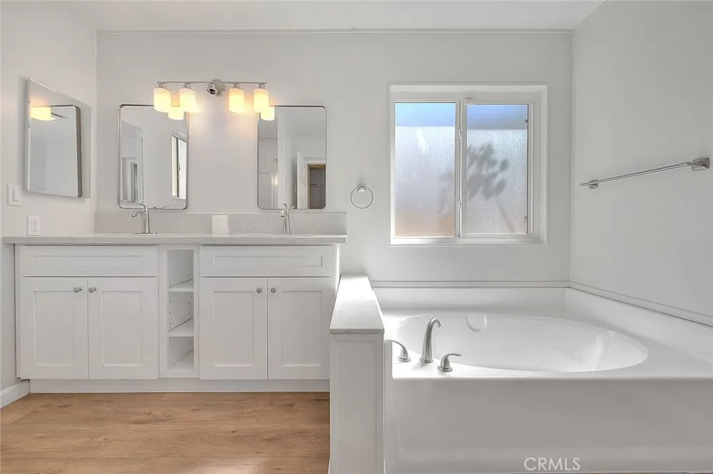 Beautifully remodeled home located in the highly desirable Golf Knolls 55+ senior community! This spacious 2 bedroom, 2 bath home offers approximately 1,908 sq. ft. of upgraded living space with a modern, open floor plan. Inside features new vinyl plank flooring throughout, fresh interior and exterior paint, recessed lighting, updated fixtures, switches, plugs, and baseboards. The fully updated kitchen includes white shaker cabinets, quartz countertops, stainless steel Whirlpool appliances, and abundant storage. The large family room offers vaulted ceilings, a modern tiled fireplace, and plenty of natural light. The expansive primary suite includes his-and-hers closets and a beautifully renovated bathroom with dual vanities, a new walk-in shower, and a separate soaking tub. The secondary bedroom is generously sized with an updated full bath nearby. Additional features include a separate laundry room with new cabinetry, a long covered carport, a front porch, and low-maintenance landscaping. Senior community has fantastic amenities including a swimming pool, spa, barbecue area, dog park, gym/exercise room, clubhouse, and recreation room. Conveniently close to shopping, restaurants, medical services, and freeway access. This turnkey home is move-in ready and shows like a model! Buyer to verify all information.