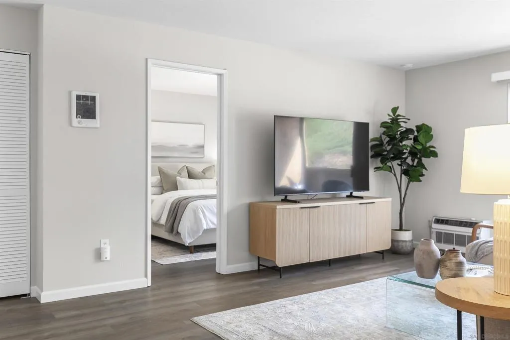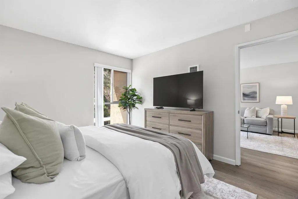 PRICE REDUCTION!Beautifully remodeled top-floor Del Cerro condo with no one above you and peaceful hillside views. This bright 2-bed, 2-bath home offers an open layout with split master suites—ideal for roommates or added privacy. Features include a North East facing main door, a full-size in-unit washer/dryer, upscale vinyl plank flooring, fresh paint, modern fixtures, and a newer wall A/C. The kitchen has a brand-new range, microwave, and dishwasher, and the bathroom has been updated with an epoxy-sprayed shower and frameless glass door. Located in a VA-approved complex, minutes from SDSU. This home is ready for you to move in and make it your own! Seller is transferring newly purchased, professionally curated high-quality furniture at not additional cost. MOTIVATED SELLER!