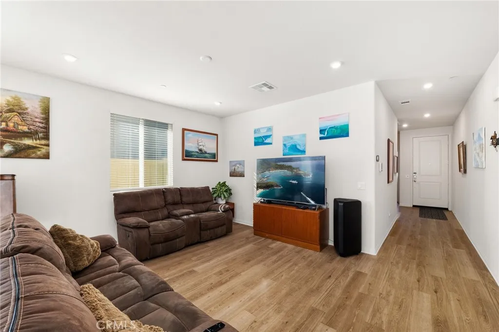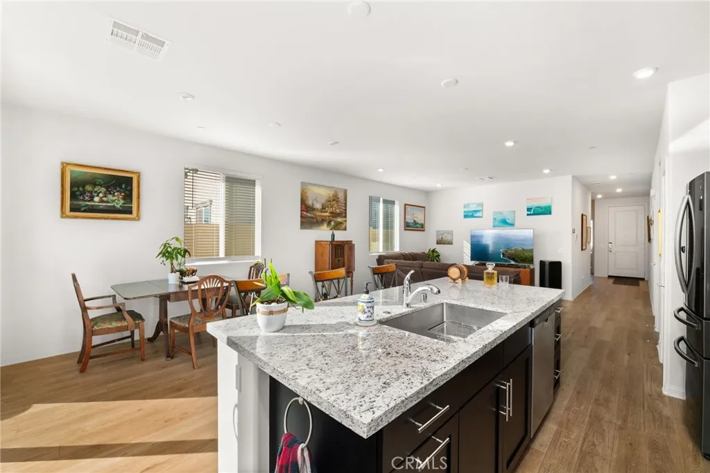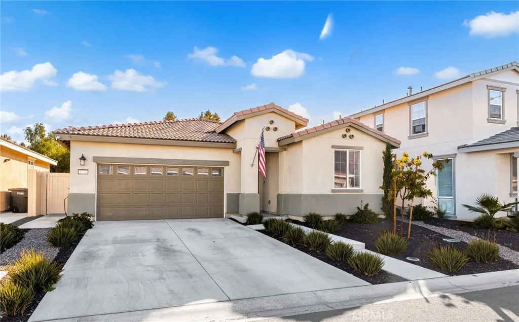 Your Dream Home awaits at Mountain Bridge North. Welcome to this beautiful single-story Plan One home in Mountain Bridge North. With solar included, this home offers energy-efficient living from day one. Inside, you’ll find a thoughtfully designed layout featuring two generous secondary bedrooms, a convenient laundry room, and an open-concept living area that blends comfort and functionality. The stylish kitchen includes a large center island, dark shaker cabinets, granite countertops, and durable LVP flooring—ideal for both everyday use and entertaining. The private primary suite offers a peaceful retreat with a spacious walk-in closet and a deluxe bathroom complete with dual sinks, a soaking tub, and a walk-in shower. This home is also equipped with Century Home Connect smart home features, including a Schlage electronic front door lock, IQ Panel, Ecobee smart thermostat, and Eero wireless router for modern convenience and peace of mind. Outside, the property has been enhanced with new concrete poured in the back and side yards, offering low-maintenance, clean, and functional outdoor living spaces. The front yard features drought-resistant landscaping designed to be both attractive and easy to maintain—perfect for California’s climate. Priced to sell and loaded with upgrades, this home is a fantastic opportunity you don’t want to miss. Schedule your tour today and experience the comfort of smart, efficient living! With a LOW HOA, residents of Mountain Bridge North enjoy access to private community amenities, including a tot lot, open green spaces with shaded seating, an outdoor workout station, picnic trellis, and BBQ area—everything you need to enjoy the outdoors close to home.
