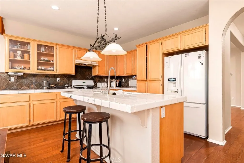 FORMER MODEL HOME WITH LOVELY UPGRADES — And Freshly Painted for the New Owner. You enter to Rich Brazilian real Wood Floors. There is a Fomal Living Room and Dining Room Plus a Spacious Family room with Builtins and Cozy Fireplace adjacent to the Huge Kitchen, great for family living, Lots of Kitchen Cabinets including Bill Desk. Some with Glass Fronts. Front Downstairs Bedroom with High Ceilings being used as Office/Game Room. The Master is oversized and also has Custom Builtins. The Master Bath has Dual Sinks, custom tile flooring, a Separate Tub and Shower. This is a great family home. Don’t miss it!