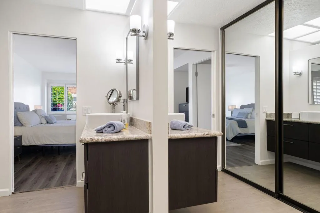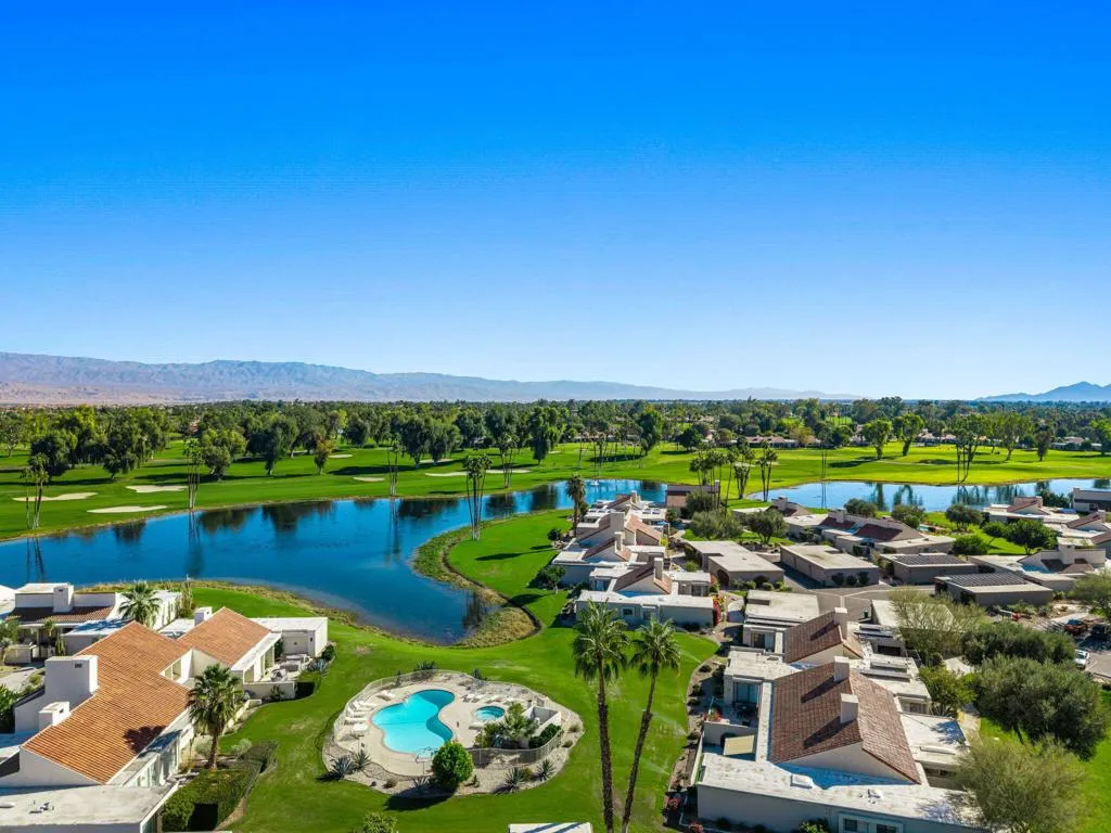 Step into the relaxed luxury of Mission Hills Country Club–one of the Coachella Valley’s most admired communities, known for its gorgeous scenery, world-class golf, and top-ranked USTA tennis center. This updated single-level end unit blends comfort and style with vaulted wood-beam ceilings, a welcoming sunken living room, a fully renovated kitchen and bathrooms and a bonus room which can be used as an additional bedroom, den or office. Enjoy peaceful lake views from your private patio, with the Main Clubhouse just a short walk away. A pool and spa heated all year sits just beyond your backyard for effortless resort-style living. Recent upgrades include an all-new kitchen, modernized bathrooms, refinished travertine, newer LVP flooring, updated HVAC and water heater, and a spacious two-car detached garage with extra storage. With its excellent location and amenities, this home also offers strong potential as an income property.Mission Hills provides gated security, multiple convenient access points, and plenty of guest parking, making everyday living both easy and enjoyable.
