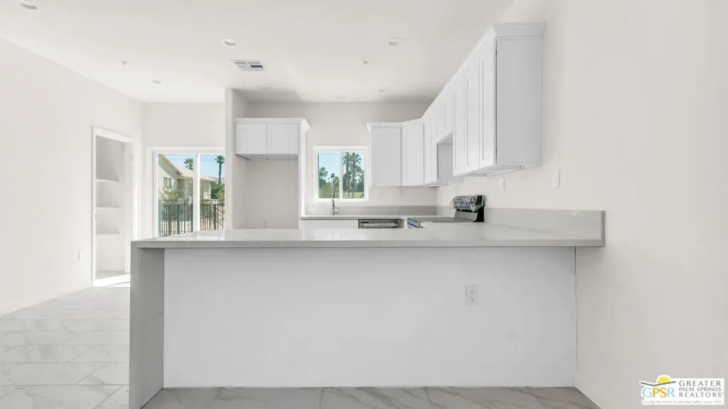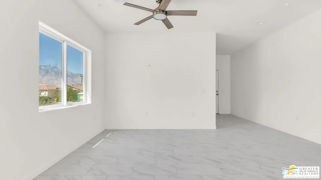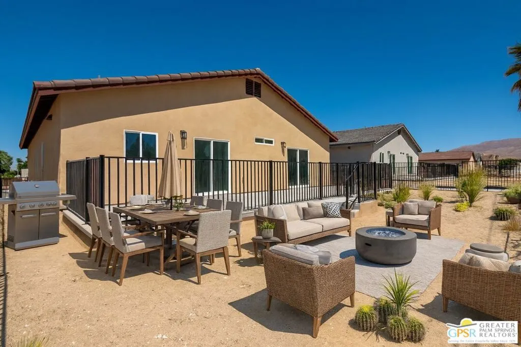 New Construction with No Hoa and Solar! This single-story residence features an open-concept layout with stylish upgrades that feature tile flooring that flows seamlessly throughout the living spaces. Clean lines and modern finishes create a sleek, inviting atmosphere. The thoughtfully designed kitchen with stainless steel appliances , waterfall granite counter top opens to the living and dining areas, making it ideal for entertaining or relaxing at home. Private guest quarters, offering flexibility for visiting family or even a home office. With its combination of contemporary elegance, practical design, and the ease of single-level living, this home is move-in ready and perfectly situated to enjoy everything Desert Hot Springs has to offer. Enjoy your mountain views while entertaining in your fenced back yard. Equipped with Central AC / Heat and Solar.