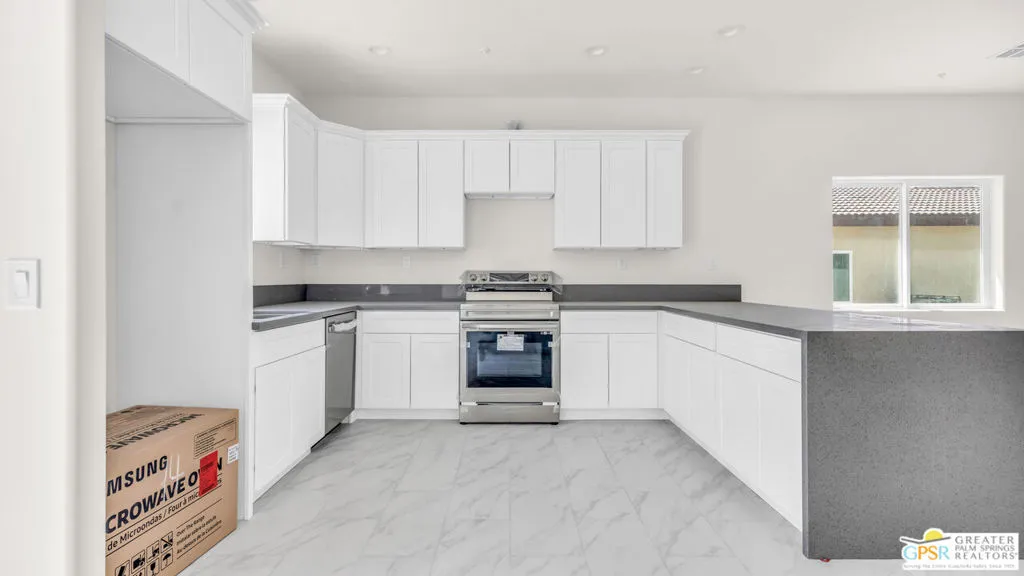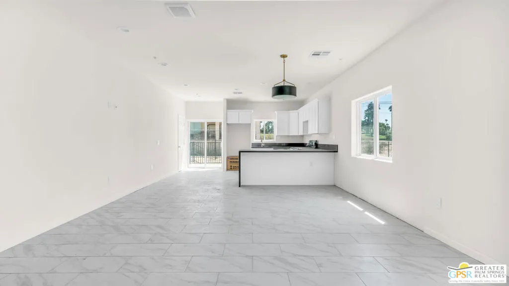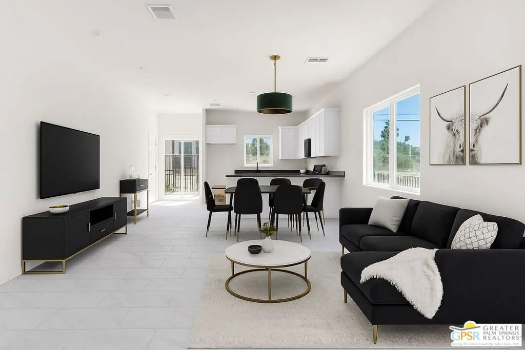 New Construction – NO HOA with Solar! Single-story residence features an open-concept layout with stylish upgrades that feature tile flooring that flows seamlessly throughout the living spaces. Clean lines and modern finishes create a sleek, inviting atmosphere. The thoughtfully designed kitchen with stainless steel appliances , waterfall granite counter top opens to the living and dining areas, making it ideal for entertaining or relaxing at home. A special highlight of this property is the private guest quarters, offering flexibility for visiting family, friends, or even a home office. With its combination of contemporary elegance, practical design, and the ease of single-level living, this home is move-in ready and perfectly situated to enjoy everything Desert Hot Springs has to offer. Enjoy your mountain views while entertaining in your fenced back yard. Equipped with Central AC / Heat and Solar.