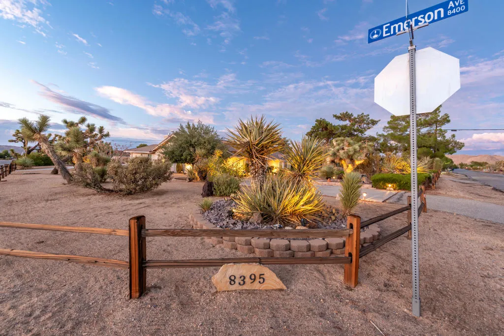 Well maintained would be an understatement – this beautiful corner-lot home has been meticulously curated and thoughtfully upgraded, offering an astonishing 2,478 sq. ft. of open-concept living space with 3 bedrooms and 2 bathrooms. Over the years, the property has seen numerous upgrades including a new roof, Milgard windows, furnace, AC condenser, carpets, interior/exterior paint, fireplace, plantation shutters, and a fully permitted enclosed patio. Every detail reflects pride of ownership and a commitment to quality. The floor plan offers seamless indoor/outdoor flow. A spacious great room leads to the enclosed patio, while the kitchen features granite countertops, stainless steel appliances, bar seating, and abundant cabinetry. Additional highlights include a dedicated dining room, living room, laundry room, and flexible bedrooms – one currently designed as a home office. The backyard evokes desert sanctuary vibes and pure relaxation, with sandstone pavers weaving through a beautiful desert garden anchored by a striking Mesquite tree and a mature Joshua Tree as the focal points. Multiple patios, RV parking with septic and electrical hookups, a 2-car garage, and extensive driveway space provide both connivence and functionality. Homes with this much space and in this pristine of condition at this price don’t come around often. Come see for yourself why the photos just can’t capture how special it really is!
