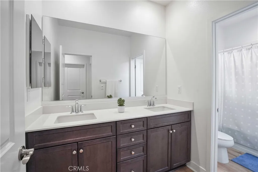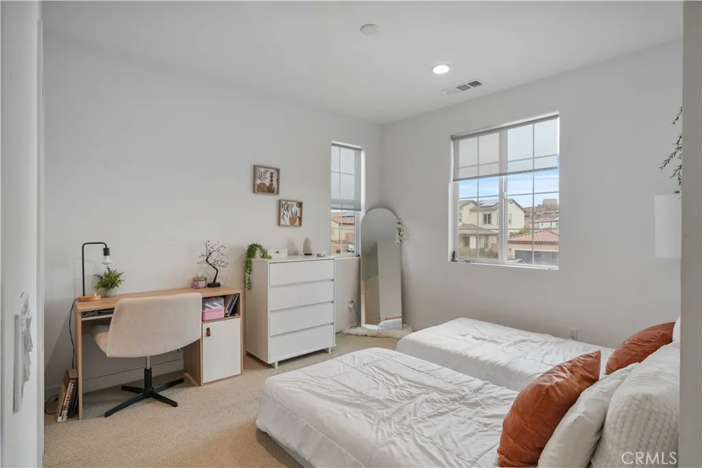 Stunning West Palmdale Home For Sale in the newer development of Saddlewood Joshua Ranch constructed in 2020. Featuring one of the largest models, the Plan 3 Elevation A with 3,186 sq.ft. 18 Solar Panels OWNED (not leased and no monthly payments), Quartz countertops, Luxury Vinyl Planks, and a Whole House Fan. The Downstairs includes 1 bedroom and 1 full bathroom, in addition to a powder or half bathroom downstairs for visitors. Open concept Kitchen to Dining area to Family room, you’ll be able to entertain all your guests in one large area without missing a beat. Adjacent to the Kitchen is a dry bar or butlers bar, and a walk-in Pantry, and ending with the Formal Living room facing the front of the house which creates the perfect room for decorating the tree for the Holidays! Upstairs includes 2 guest bedrooms, 1 full bathroom for the guest bedrooms, and a Loft that is conveniently adjacent to the guest bedrooms which creates the perfect upstairs Living or entertainment room. The Primary Suite upstairs is spacious to include a King set, office space, a walk-in closet, a walk-in shower, a soaking tub, a private toilet room, and a dual-sink vanity. With no rear neighbor, the Primary bedroom has gorgeous views of the backyard. Conveniently located upstairs is a Laundry Room with cabinetry and rough plumbing ready for a future sink. The 3 car garage side-by-side is wide and long and high ceilings ready for installing additional storage racks. The driveway can potentially fit another 6 vehicles depending on size, you might be able to park up to 9 vehicles parked within your property line (buyer to verify). Both front and backyard are landscaped and hardscaped with drought resistant plants, rocks, turf, retaining wall, a fire pit, and a concrete slab for a Basketball hoop. Adjacent to the Kitchen is the outdoor covered patio or “California Room” finished with stucco, electrical, and plumbing fixtures. The HVAC includes 2 AC condensers, one for downstairs and one for upstairs. Welcome Home to Saddlewood Joshua Ranch, West Palmdale.
