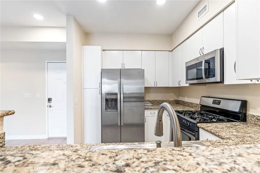 Experience modern, resort-style living in the heart of Anaheim. This bright unit features 2 bedrooms, 2 bathrooms, 9-foot ceilings, central AC/heat, a tankless water heater, and full-size in-unit laundry. The open layout separates both bedrooms for added privacy, and the kitchen offers a granite breakfast bar perfect for everyday living or entertaining. Enjoy a spacious master suite with a walk-in closet, plantation shutters throughout, and two dedicated parking spaces. Stadium Lofts offers unbeatable amenities: a heated pool & spa, fitness center, conference room, and multiple BBQ areas.