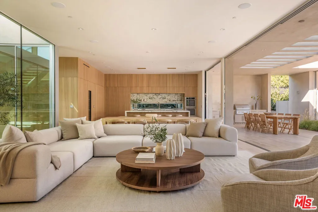 A stunning brand new warm contemporary by Wylan James. Featuring an incredible blend of design and architecture located on one of Brentwood’s most prime streets. A stunning light filled entry and living room with center courtyard & open floor plan are perfect for large scale entertaining or intimate gatherings. High ceilings, walls of glass and warm light woods throughout create a calming ambience. An Incredible kitchen, family/great room open to the private grassy garden and pool, office, theatre, gym/wellness area, and separate guest house. There is a large primary suite with huge closets and luxurious spa like baths. Incredible materials, craftsmanship and exacting details for the most discerning.