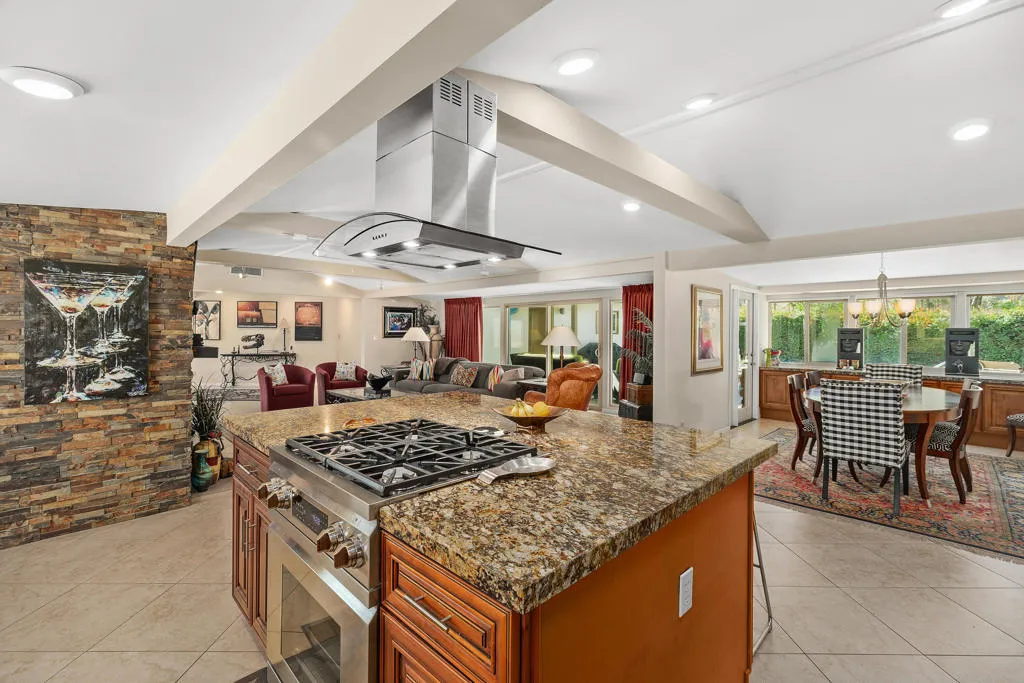 Fabulous Views and Provenance too! This upgraded mid-century home on 1/3 acre lot was one of the original Thunderbird Country Club homes located on the 3rd Fairway of this ”world-renowned” Thunderbird CC golf course. This home was owned by both the famous musician and composer Hoagy Carmichael as well as owned by Sylvester Weaver, first President of NBC who started The Today Show (Father of actress Sigourney Weaver)…this was their winter home. It has wonderful views of the southern mountains from the living areas of the home, the back patio and pool. In 2019 a 500 sq ft addition was added which includes a bedroom/office, full bath and inside laundry room. Features of this home include an open concept living area with architectural beamed ceilings, a huge double wide stone fireplace, a large island for cooking with a breakfast bar, hi-end stainless steel energy efficient appliances, an energy efficient foam roof, leased and owned solar with 25-year warranty and Tesla Powerwall Battery, new insulated garage doors, 3-zone AC units, new double paned windows, Covered patio with electric louvers and lighting, newly resurfaced back patio, mature fruit trees throughout property and water saving desert landscaping with privacy hedges front and back. The spacious master bedroom has lots of storage and there are His and Hers bathrooms with a marble Roman tub in Hers! The large pebble-tec pool has wonderful views of the mountains beyond. There is also a large extra storage area near the garage. Best of all – within walking distance of the Club House.