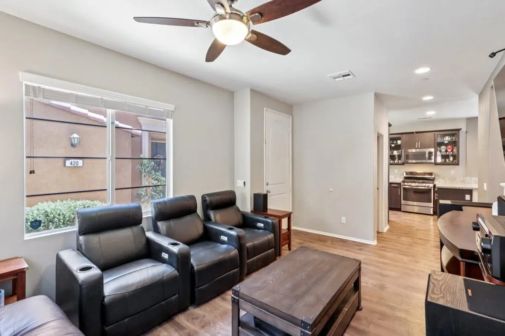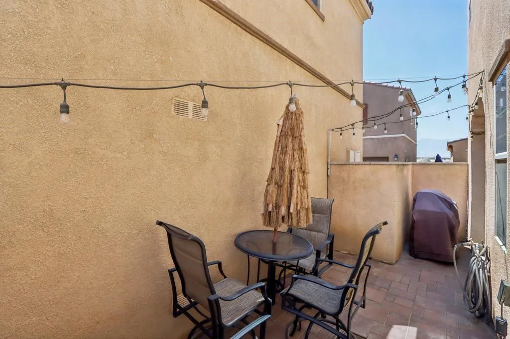 Welcome to Spanish Walk in Palm Desert! This beautifully maintained townhome Sonrisa model by DR Horton offers 3 bedrooms and 3 bathrooms across 1,624 sq. ft. of stylish living space. Built in 2016, the home boasts an open-concept design with a spacious dining area and family room, a modern kitchen with granite countertops, gas range, and plenty of storage. Upstairs, all bedrooms are thoughtfully situated, including a Jack-and-Jill bathroom and a convenient upper-level laundry area.Enjoy low-maintenance living with laminate and vinyl flooring, a covered patio, and an attached 2-car garage. The gated community features resort-style amenities–a sparkling pool & spa, kids splash pad, fitness center, playground, and 24-hour security. Ideally located near shopping, dining, golf, and entertainment.