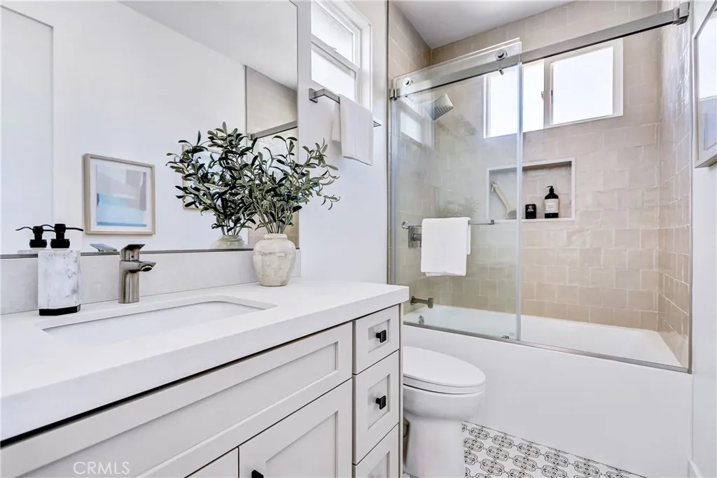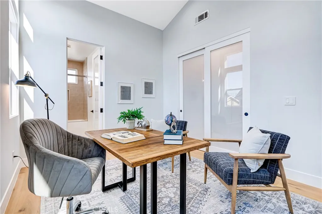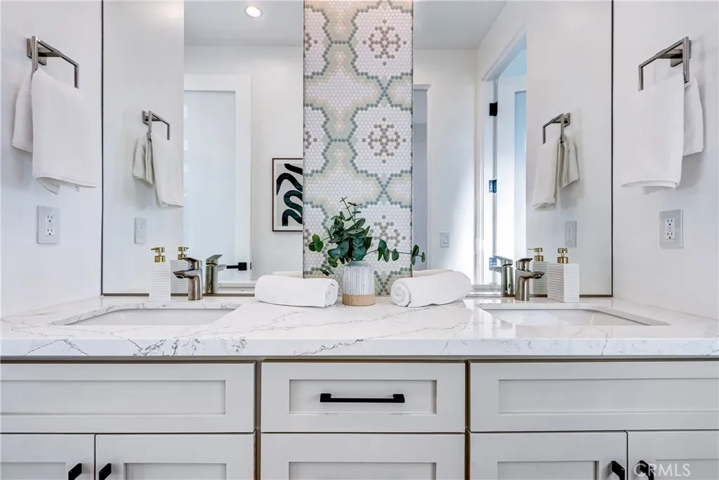 All bedrooms are located upstairs, along with a full laundry room and a second living room—a rare amenity in North Redondo new construction. The primary suite includes dual walk-in closets, a fireplace, a freestanding soaking tub, and a separate shower. Two secondary bedrooms share a Jack-and-Jill bath, while the fourth enjoys its own private ensuite.