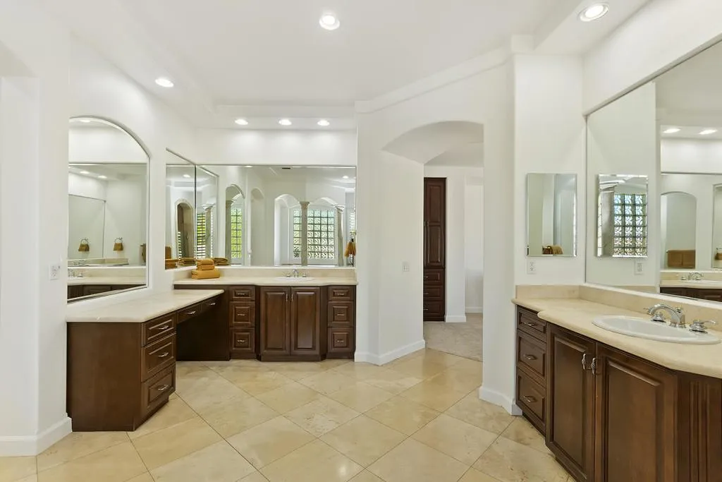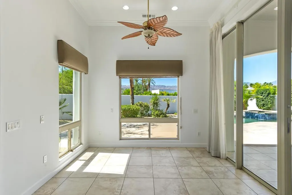 Cielo Vista-a small exclusive gated twelve home enclave in prestigious Rancho Mirage. This elegant well maintained Mediterranean style home located at the end of the cul de sac offers privacy, charm with four bedrooms/six baths plus detached casita. All bedrooms have en suite baths. Quality craftsmanship with impressive 16 ft. wood beamed rotunda entry with crystal chandelier, art niches and clerestory windows. Spacious open floor plan, crown molding, trey ceilings, custom wall plaster and four fireplaces. Gourmet kitchen, a chef’s dream with state of the art appliances. Seamless outdoor transition thru 9 ft. pocket sliders to large covered patio, pool/spa, fireplace and outdoor kitchen. A fabulous home for the discerning buyer who appreciates elegance with grand space and outstanding mountain vistas.
