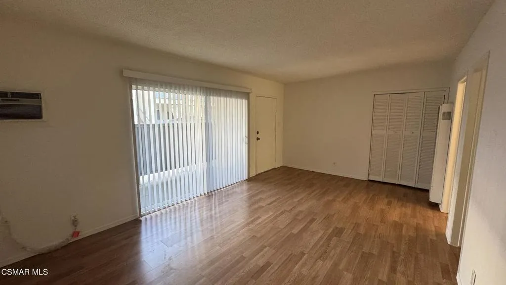 Spacious first floor studio apartment located in a secured gated complex in the Valley Glen area of Van Nuys! New paint, newer flooring. Walk into the large open living space. Separate kitchen area with small breakfast nook. Large closet that leads to the bathroom with single vanity and tub/shower combo. Large patio accessible via slider looks over the open center courtyard. Private gated parking area with 1 assigned covered parking spot. Refrigerator included. Wall A/C. Communal Laundry room. Gas, Water, and Trash are included.