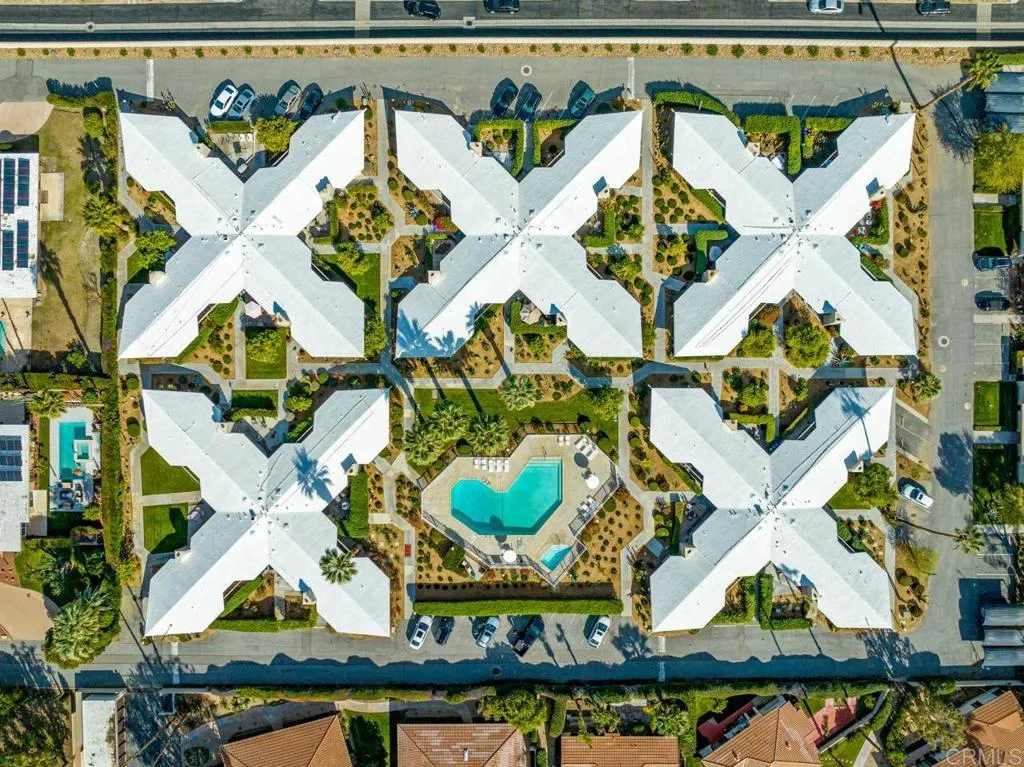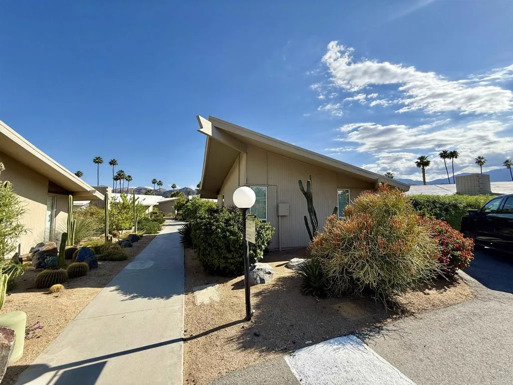 Modernism Defined. Rarely available unit in Da Vaal Estates. This piece of architectural history was designed by Val Powelson, AIA and built by Robert Marx; son of Gunmo Marx. This exceptional residence, on the Rancho Mirage Register of Historic Resources features dual primary suites situated on opposite sides of the spacious common areas. Bathed in natural light, vaulted ceilings and clerestory windows create a spacious open sensibility. The x-shaped building configuration allows ultimate privacy, since no living areas share common walls. Enjoy mountain and palm tree views from every window. Within view, the year-round heated pool and spa are just steps away and allow easy access to the benefits of outdoor living in the desert. Private outdoor areas create space for dining, lounging, sunbathing, or just to take in the beauty of the Coachella Valley. The kitchen retains mid-century modern vibes; with original cabinetry. The unit features separate laundry and storage. Conveniently located near the Tamarisk Country Club. The entire complex is under Mills Act tax treatment. HOA fees cover property taxes, building and earthquake insurance, roof, exterior structure and painting, landscaping, water, garbage, pool and spa heating and maintenance. Da Vaal Estates is a stock cooperative with only 20 units in the complex. Property taxes are included in HOA fees.
