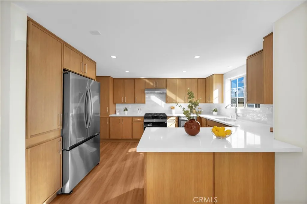 Welcome to this beautifully remodeled 2025 modern home in the heart of Redondo Beach. This front unit in a boutique four-residence community offers exceptional living and convenience, featuring an open floor plan with dramatic vaulted ceilings that seamlessly connect the kitchen, dining, and living areas. The designer kitchen showcases all-new 2025 finishes, including stainless steel appliances with a stainless steel refrigerator, white oak shaker cabinetry, quartz countertops, and bar-height seating. Throughout the home, enjoy upgraded recessed lighting, a camera doorbell, and 2nd-generation NEST thermostats. The expansive primary suite serves as a serene retreat with a beautifully finished en-suite bathroom and generous closet space. The home also includes in-unit laundry, adding everyday convenience. Step out to the private upstairs patio perfect for morning coffee or casual gatherings. The attached two-car garage offers direct access, secure parking, and ample storage. Ideally located just moments from Del Amo Fashion Center, South Bay Galleria, the Redondo Beach Pier, award-winning schools, and countless restaurants. Fully remodeled and priced to sell. Come see this home today!