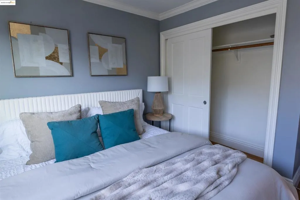 Located at the summit of Bernal Heights, this top-floor end unit offers exceptional natural light and unobstructed bay views from your exclusive-use balcony. The home features stainless steel appliances, modern fixtures, and freshly painted kitchen cabinets, with a smart layout including a bright living/dining area, spacious bedroom, full bath, two closets, and a welcoming foyer. Enjoy deeded 1-car parking, two storage areas, shared laundry, and access to a shared garden with seating and a BBQ. The building has recently undergone major HOA upgrades. Located steps from Cortland Avenue, Bernal Heights Park, Holly Park, and Precita Park, with easy freeway access. This home home is a perfect urban retreat with a balanced blend of convenience and calm.