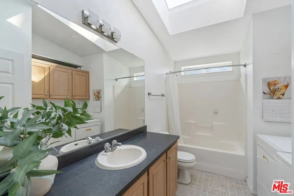This 3-bedroom, 2-bath property sits on a premium perimeter lot with sweeping, unobstructed mountain views from the main living areas, large deck, and primary suite. Situated on a quiet cul-de-sac with plentiful guest parking just steps away, the entrance leads through a beautiful, private path shaded by mature palms, past a charminggarden space perfect for morning coffee. Enter directly into abright, open living and dining space featuringhigh ceilings and clerestorywindows. Afull wall of glass leading to the expansive view deck creates a true indoor/outdoor living space with room for dining, lounging, and taking in the gorgeous backdrop. The kitchen includes abundant cabinet space, a center island with seating, and natural light from overhead skylights. The primary suite is located directly off the living area behind double sliding doors and offersa spacious walk-in closetand an en suite bath with soaking tub. Two additional bedrooms sit on the opposite side of the home; one includes a walk-in closet and a private exterior entrance, making it ideal for guests or a home office. The second bath incorporates the laundry area for easy access. Calabasas Village offers resort-style amenities including a pool, spa, clubhouse, tennis courts, fitness center, dog park, and nearby hiking trails. Conveniently located minutes from the Calabasas Commons, Malibu, and top-rated area schools, the community offers the perfect blend of natural beauty, value, and convenience.